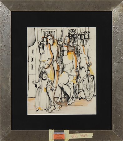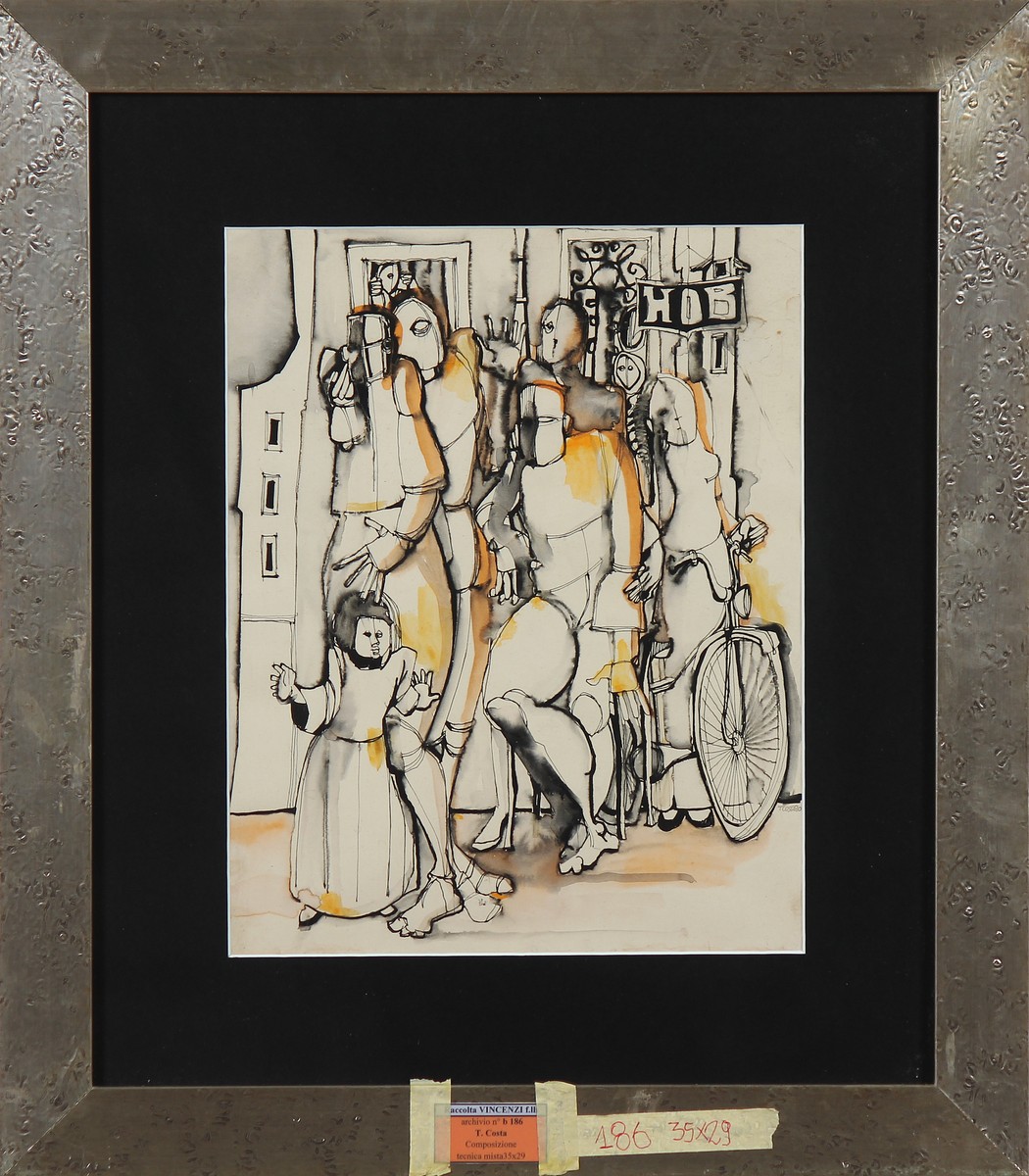ARTISTA DEL XX SECOLO Composizione. 1970. Tecnica mista su carta. Cm 29,00 x 35,00. Firma T. Costa e data in basso a destra. Cornice presente