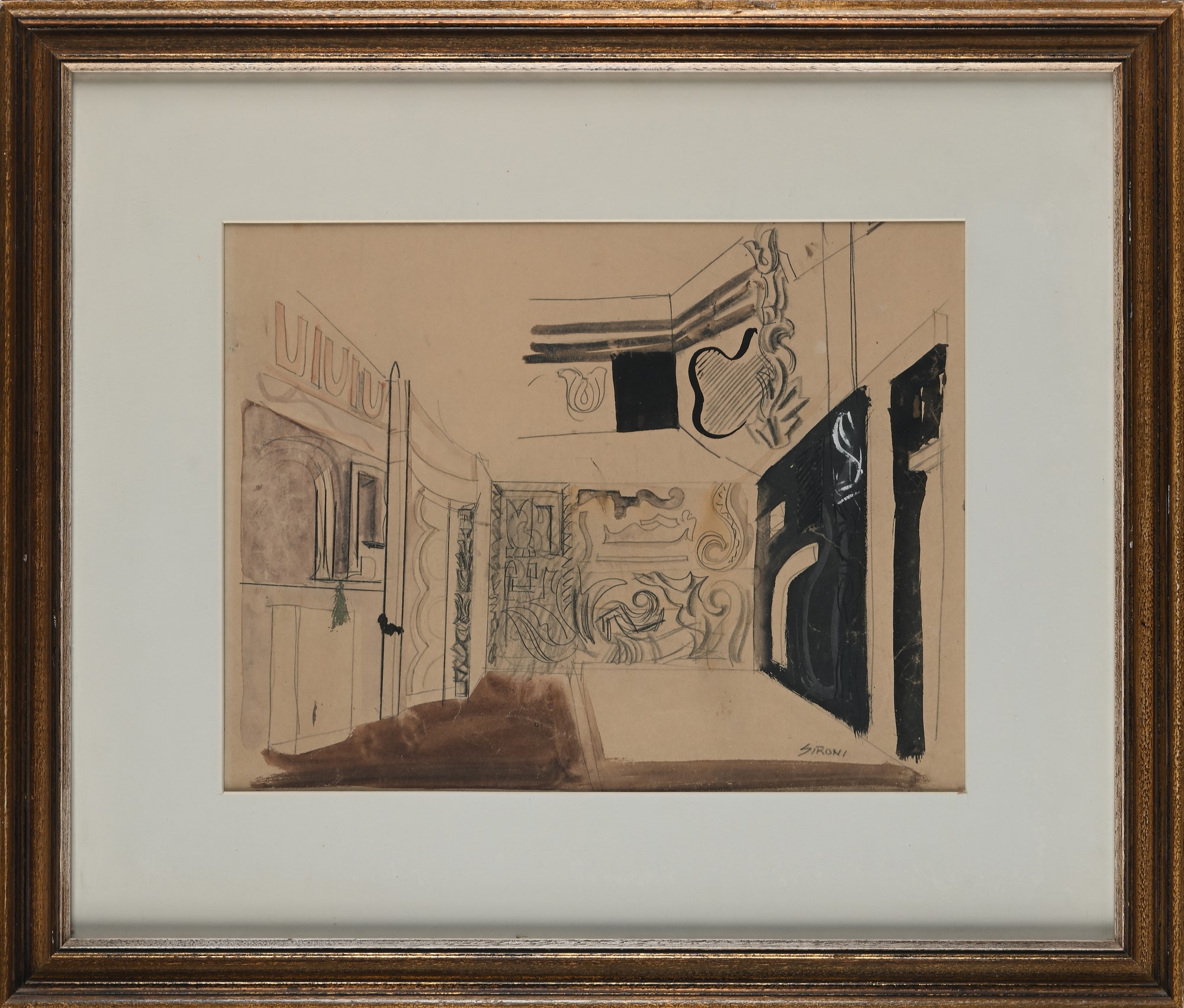 Lot 15 | Mario Sironi (Tempio Pausania 1885-Milano 1961) Interno con decorazioni 1936...