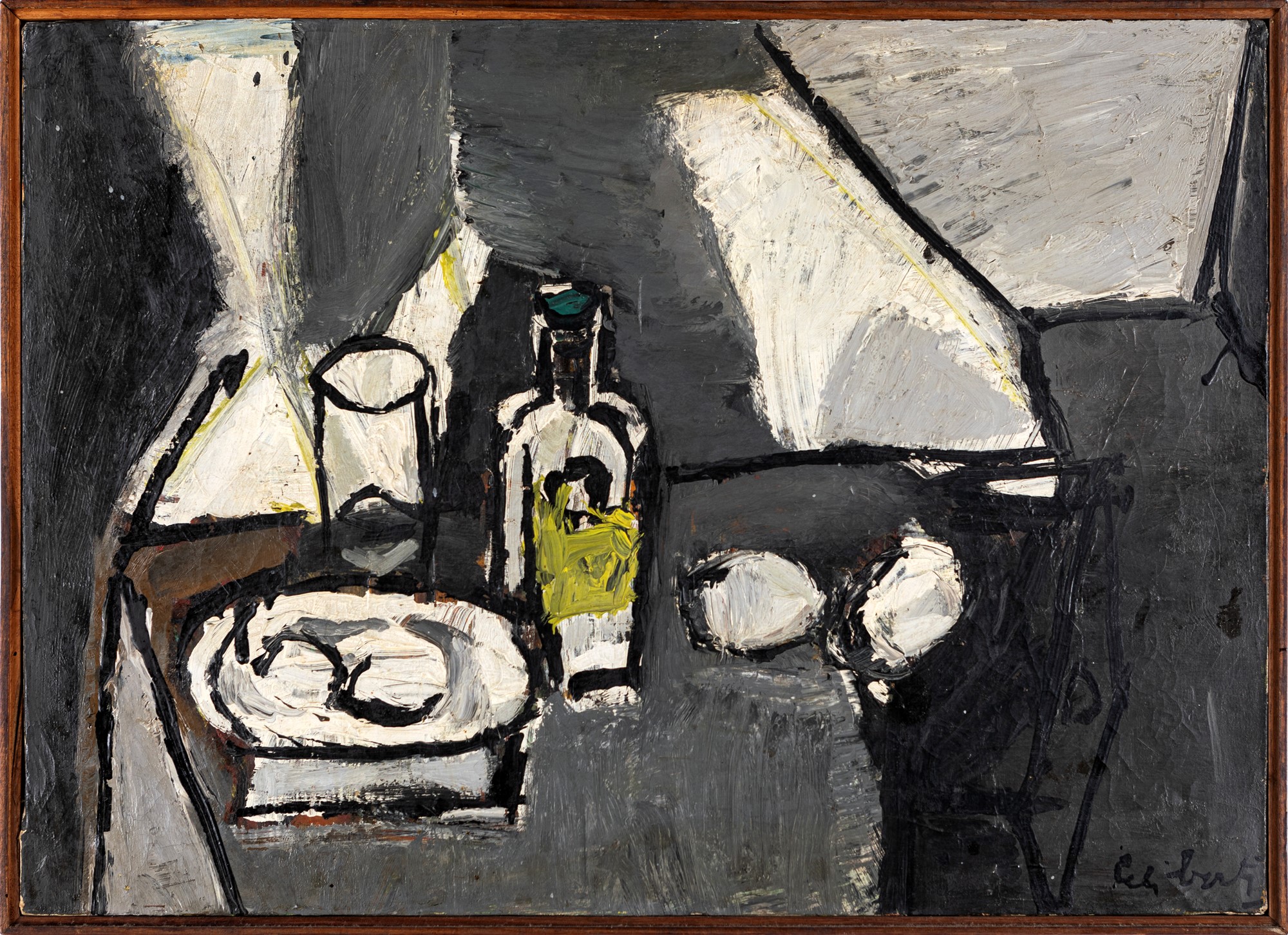 Giorgio Celiberti (Udine 1929) Natura morta con bottiglia olio su tela 50x70...
