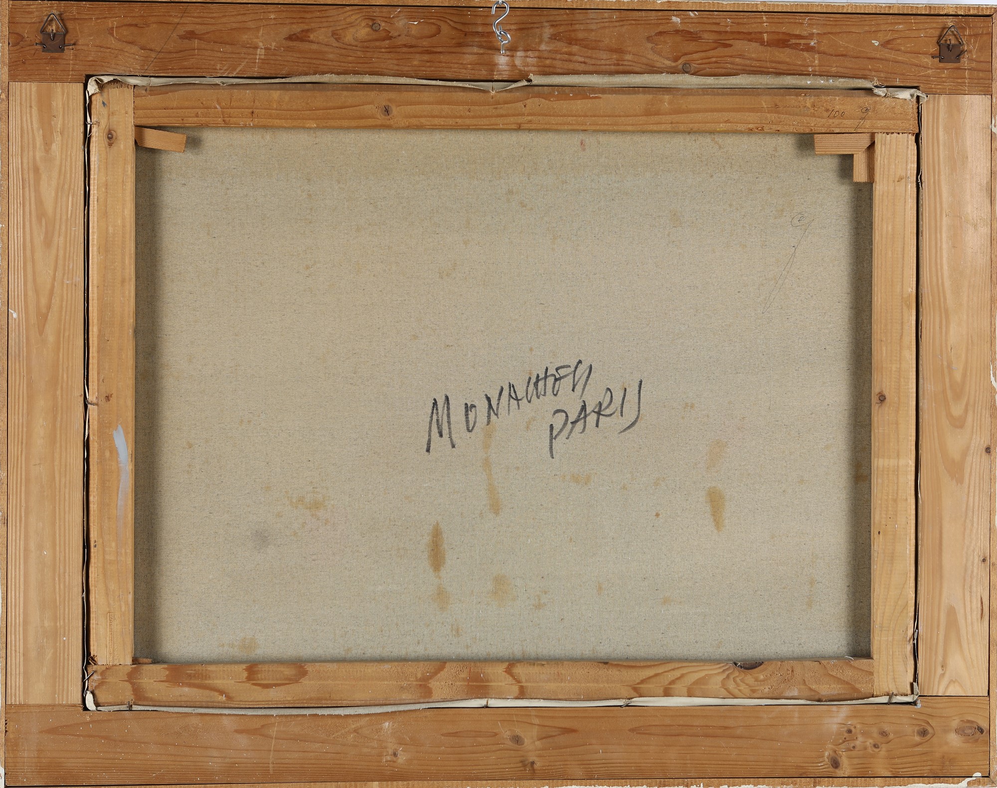 Parigi Olio su tela cm 60x80 - con cornice cm 77x97 Firma in basso a destra "Monachesi". Al verso reca "Monachesi Paris". Certificato di autenticità su fotografia rilasciato dall'Archivio Sante Monachesi a cura di Luce Monachesi