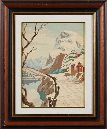 FANFANI AMINTORE (1908 - 1999) Villaggio alto, Danimarca. 1962. Olio su cartone. Cm 30,00 x 40,00. Firma in basso a destra. Cornice presente