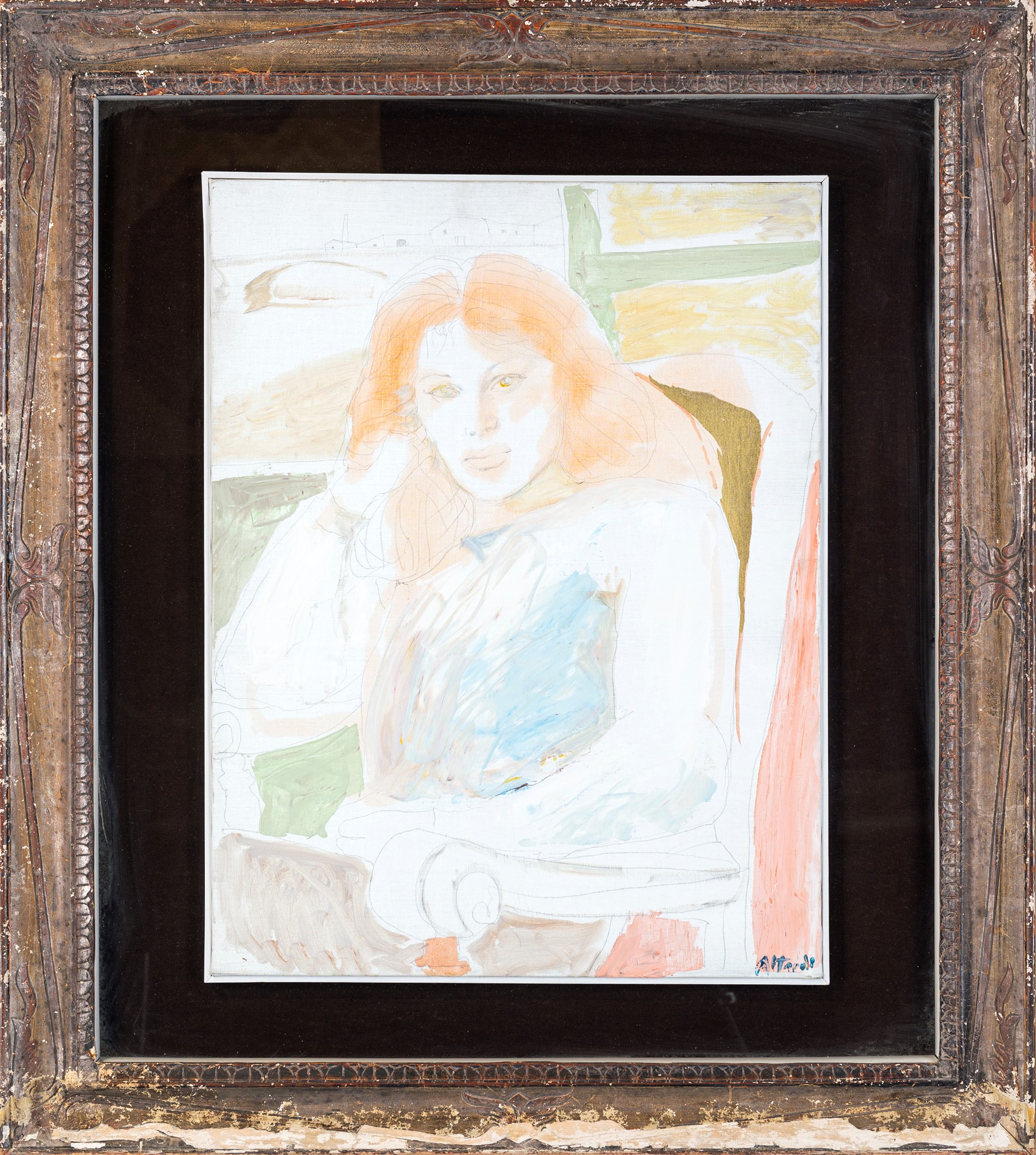 Ugo Attardi (Genova 1923-Roma 2006) Ritratto di donna seduta Matita, olio e...