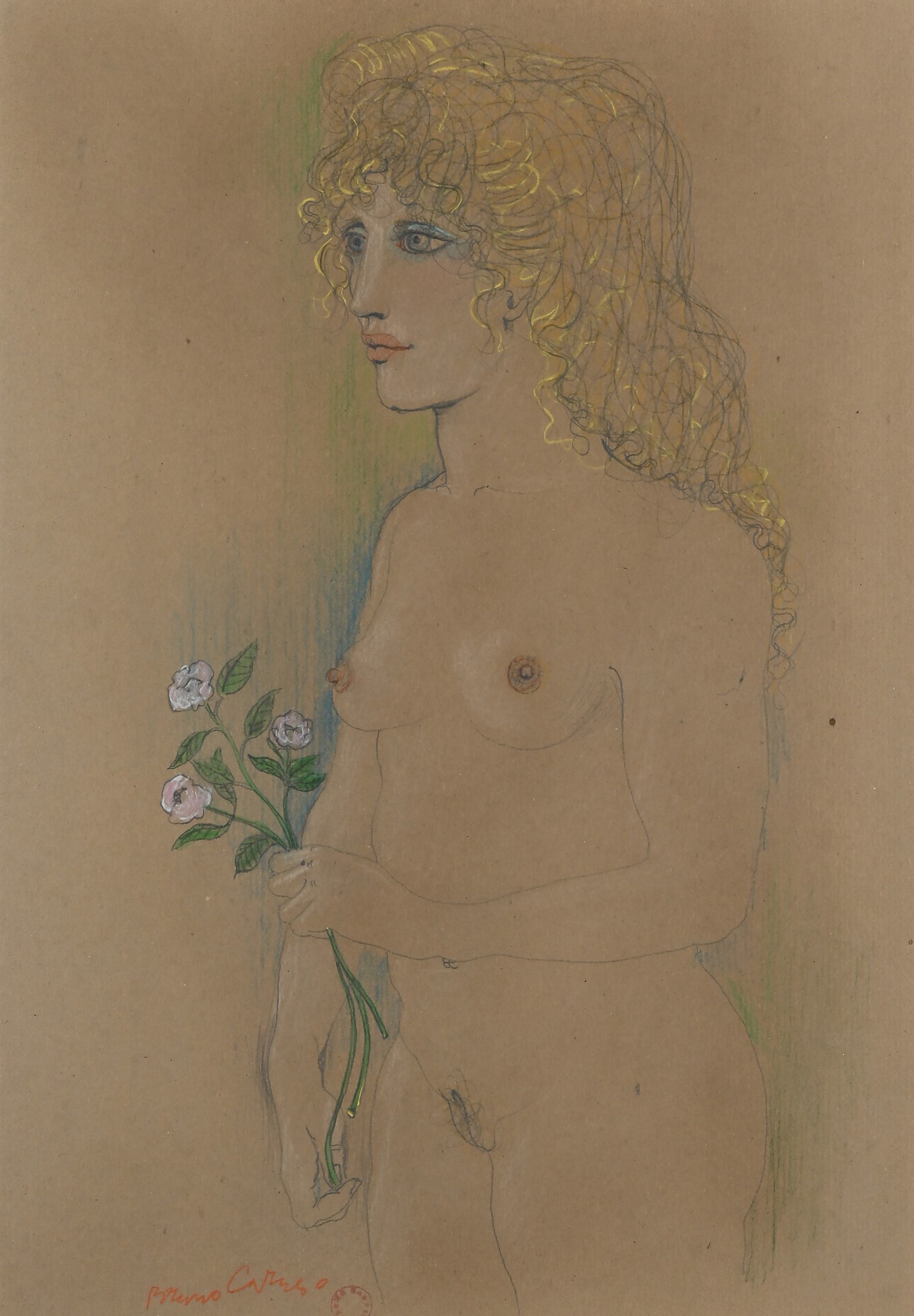 Nudo di donna Matita e pastelli su carta cm 48x33 - in cornice cm 73x58 Firma in basso a sinistra "Bruno Caruso".