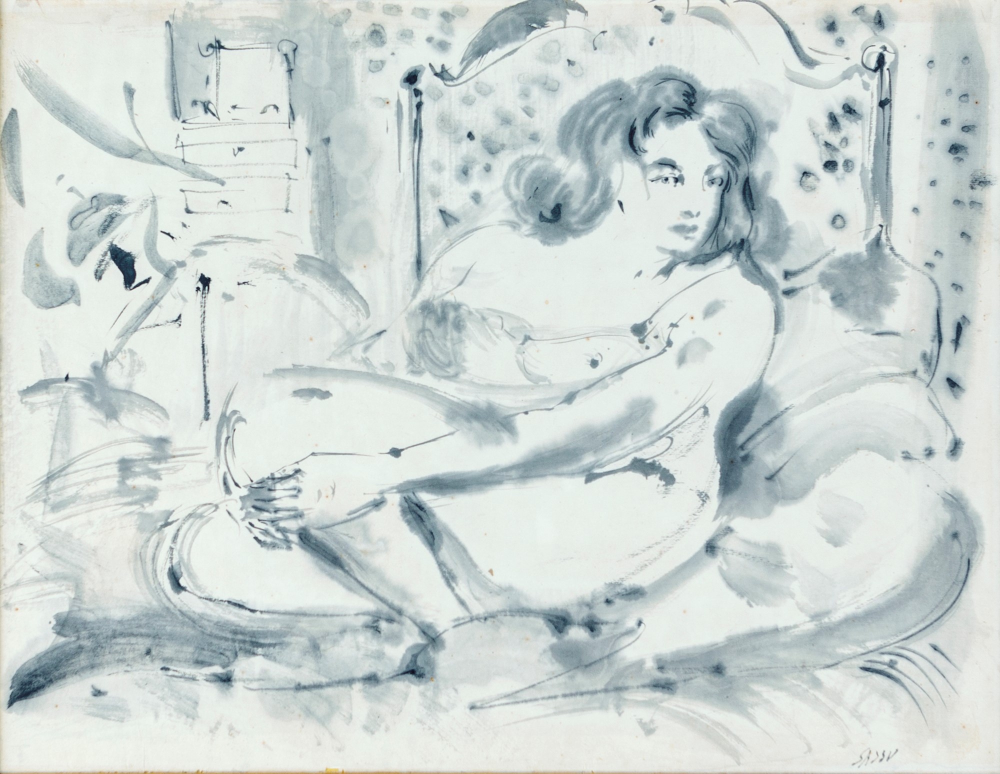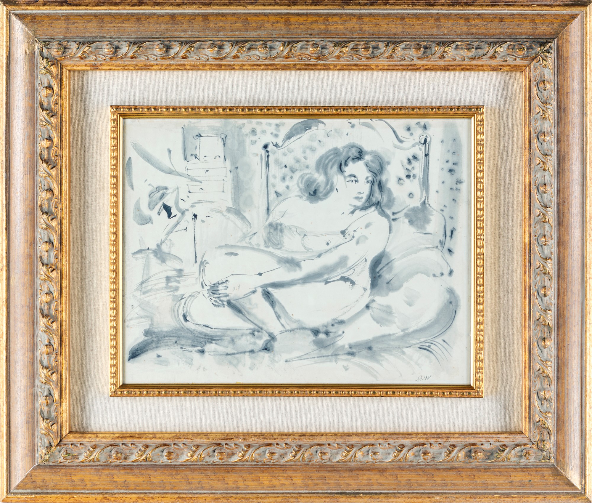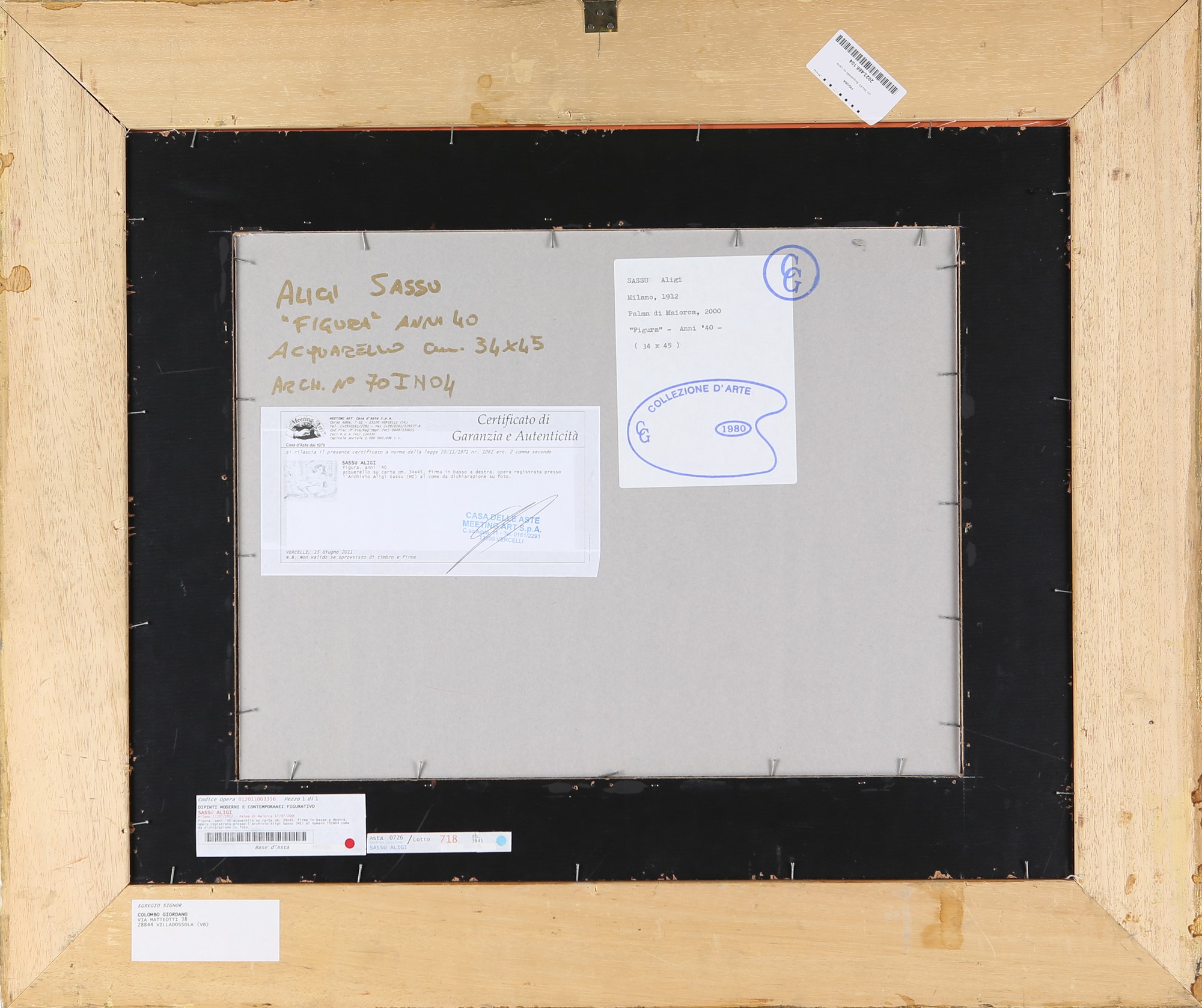 Figura Anni '40 Acquarello su carte cm 34x45 - in cornice cm 63x74,5 Firma in basso a destra "Sassu". Al verso reca certificato di autenticità e garanzia rilasciato dalla Casa d'Aste Meeting Art