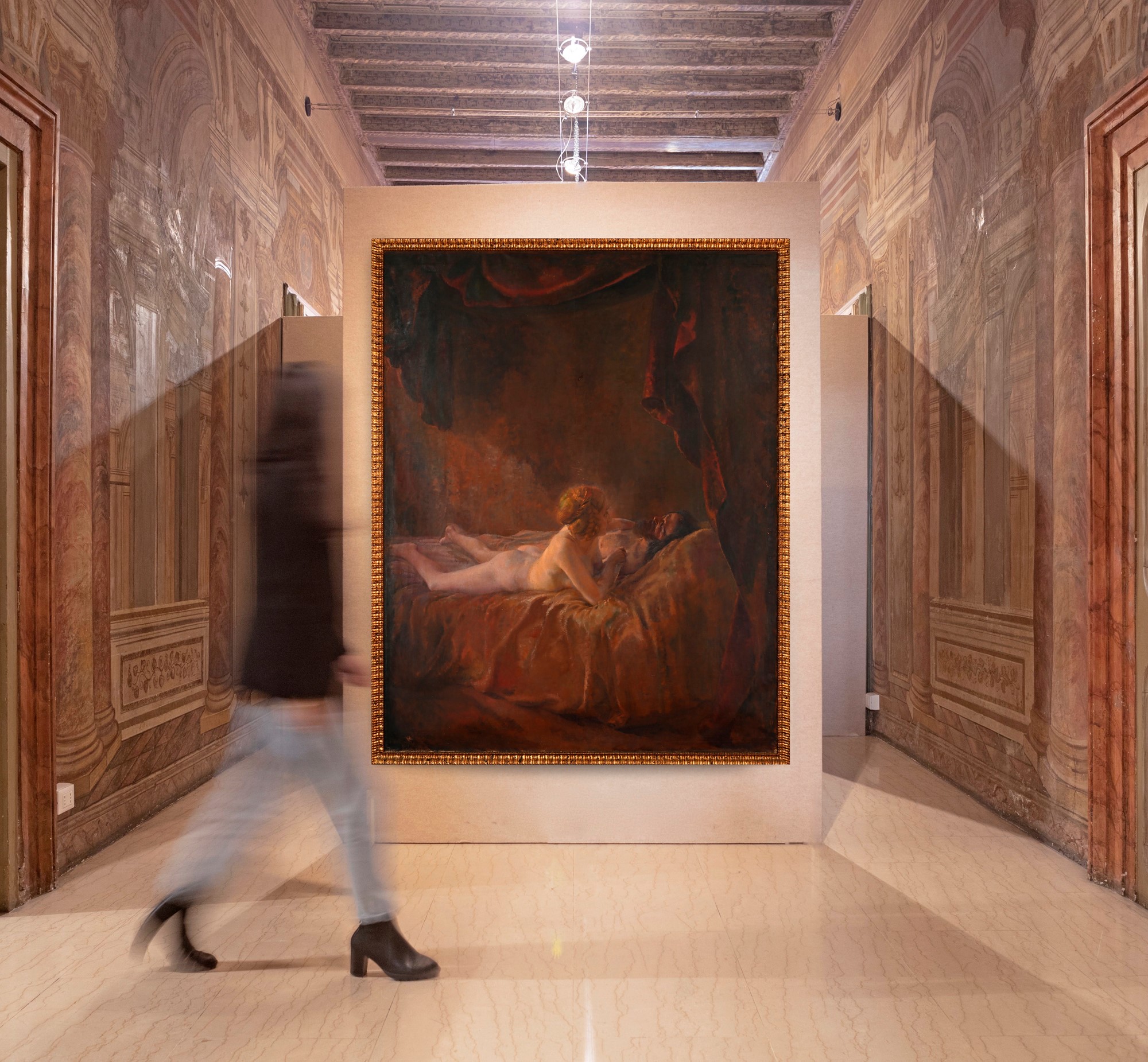 Gli amanti 1931 Olio su tela cm 195x153 - in cornice cm 203x160 Firma in basso a sinistra "A. Bordenache 1931".