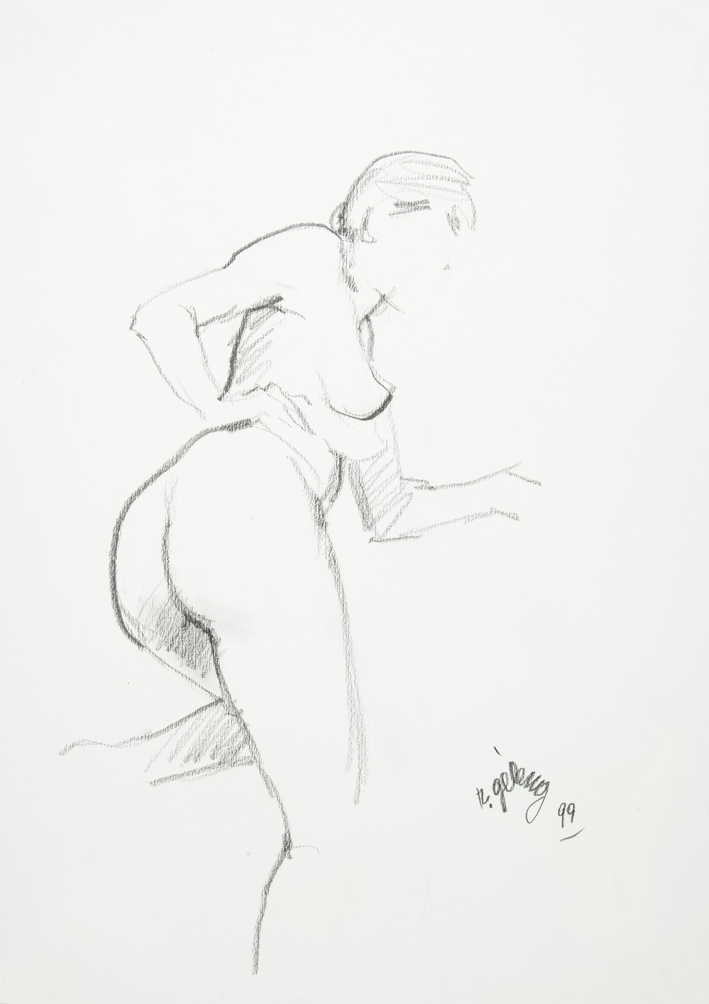 Nudo di donna di fianco 1999 Carboncino su carta cm 50x35 Firma e data a destra "R. Geleng '99"
