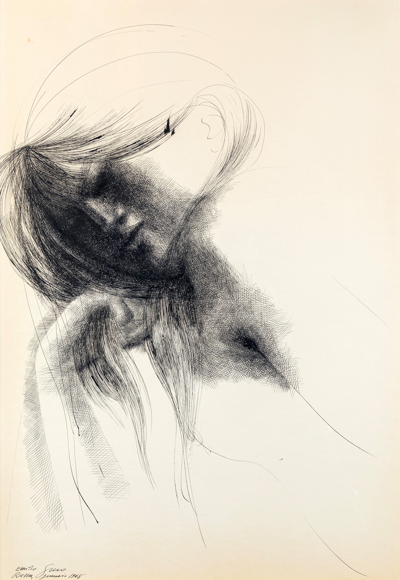 Emilio Greco (Catania 1913-Roma 1995) Fanciulla 1968 China su carta cm 98x69...