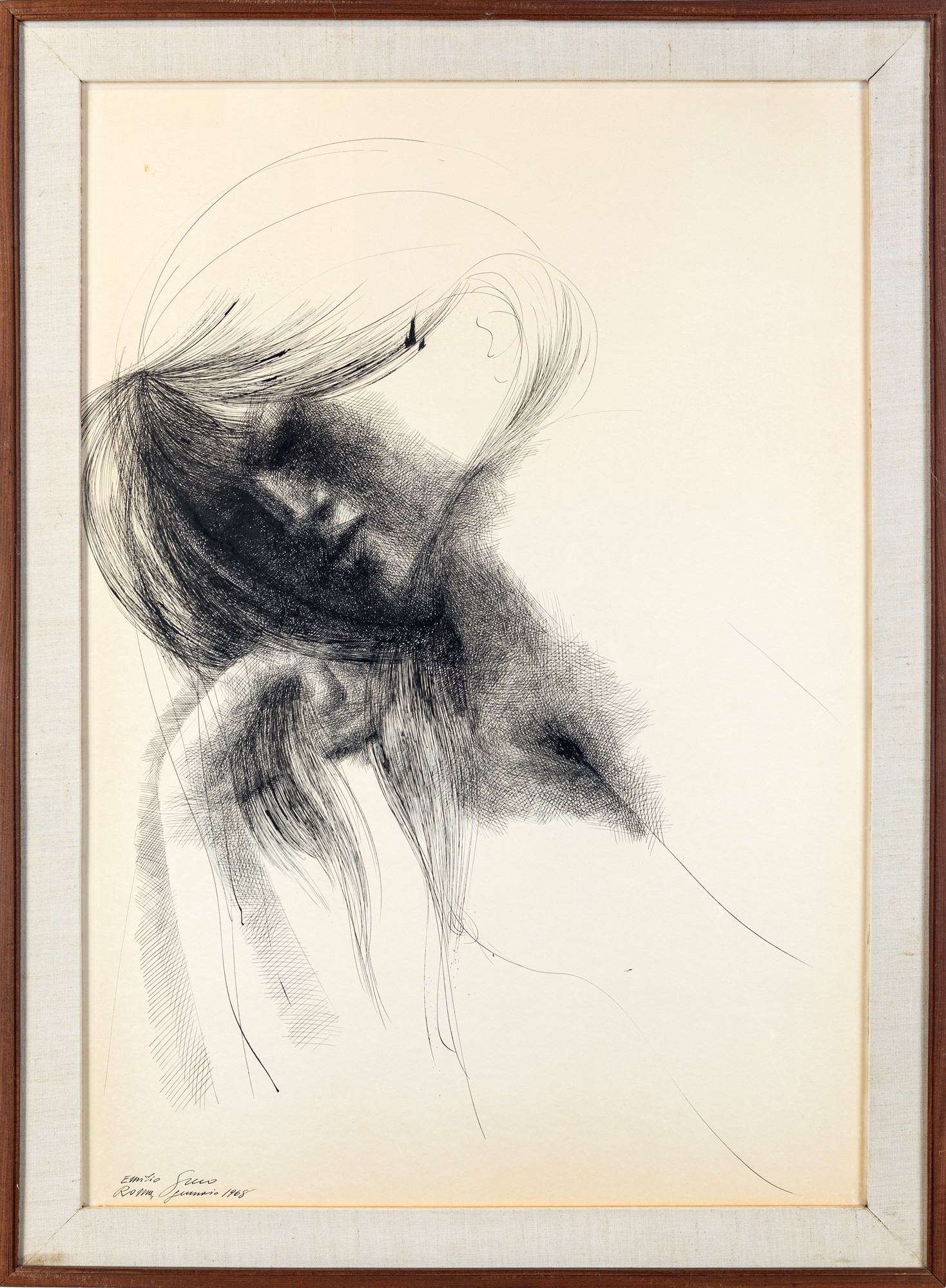 Fanciulla 1968 China su carta cm 98x69 - in cornice cm 111x82 Firma e data in basso a sinistra "Emilio Greco, Roma, Gennaio 1968"