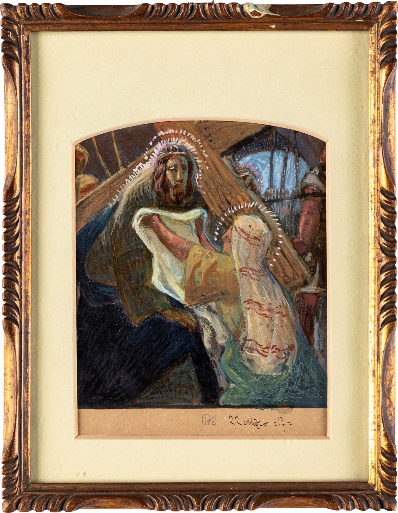 Veronica, Via Crucis 1917 Pastelli e olio su carta cm 16,2x13,5- in cornice cm 26x20,5 Monogramma e data "B.B. 22 Marzo '17". Al verso reca etichetta del Premio Marche 2022