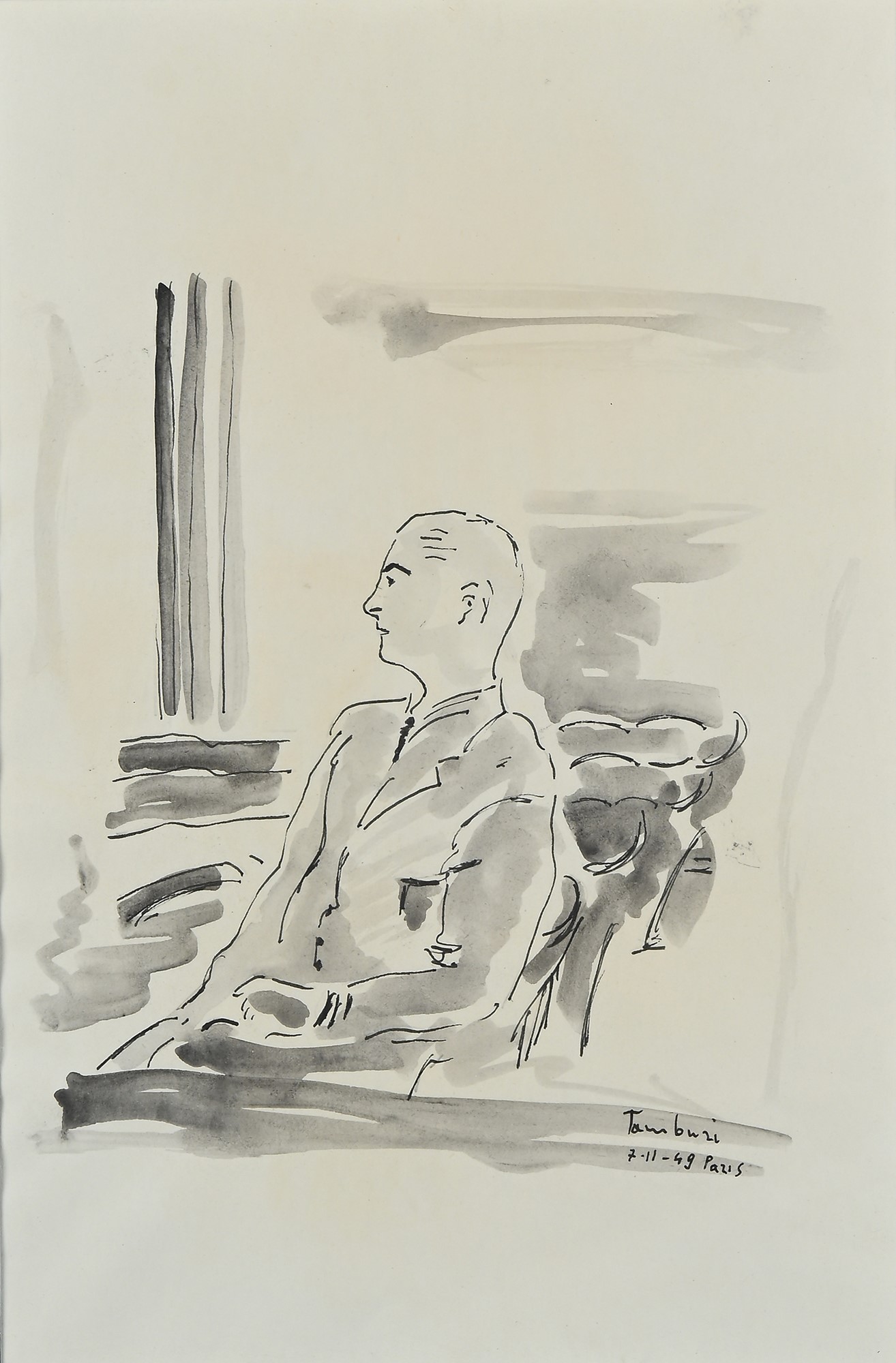 Orfeo Tamburi (Jesi 1910-Parigi 1994) Ritratto di Malaparte a Parigi 1949...