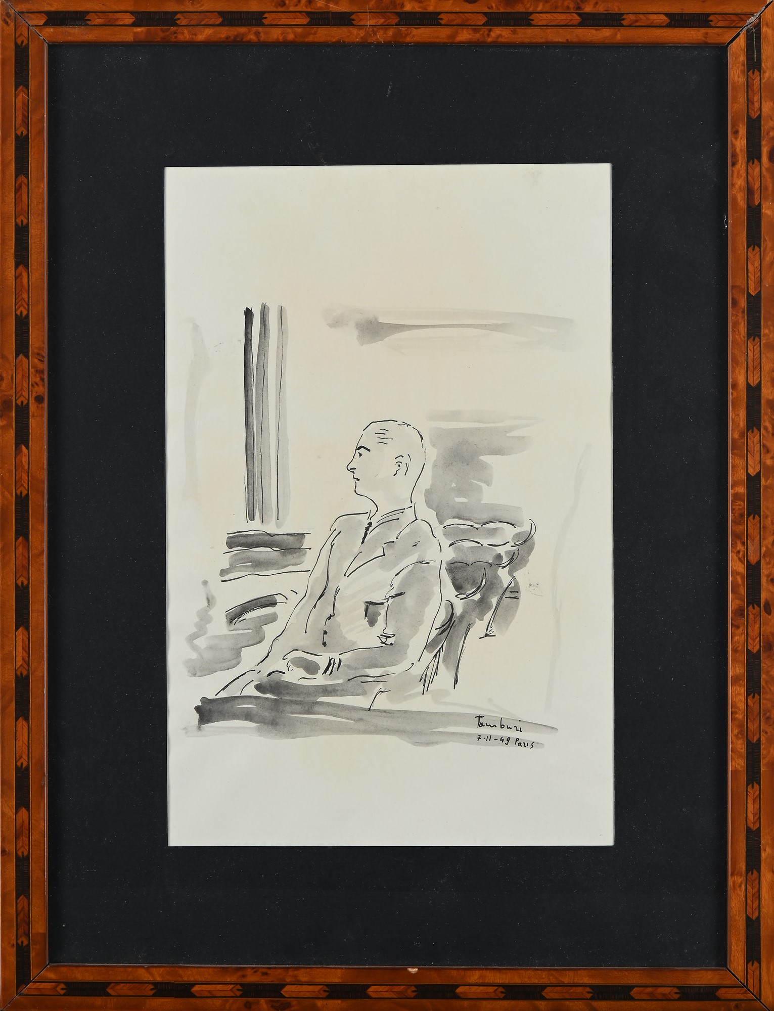 Ritratto di Malaparte a Parigi 1949 Acquarello su carta cm 29x19 - in cornice cm 43x32 Firma e data in basso a destra "Tamburi 7/11/49, Paris"
