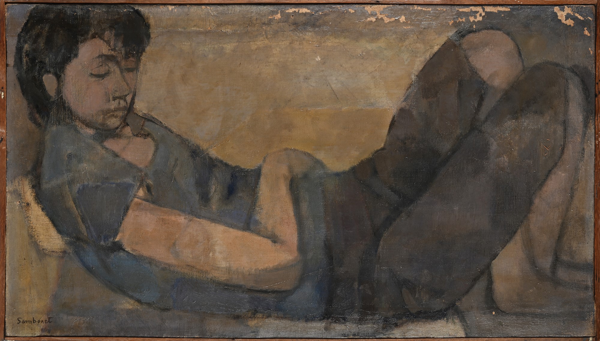Luisa dormiente Olio su tela cm 50,5x90 - in cornice cm 52x91 Firma in basso a sinistra "Sambonet"