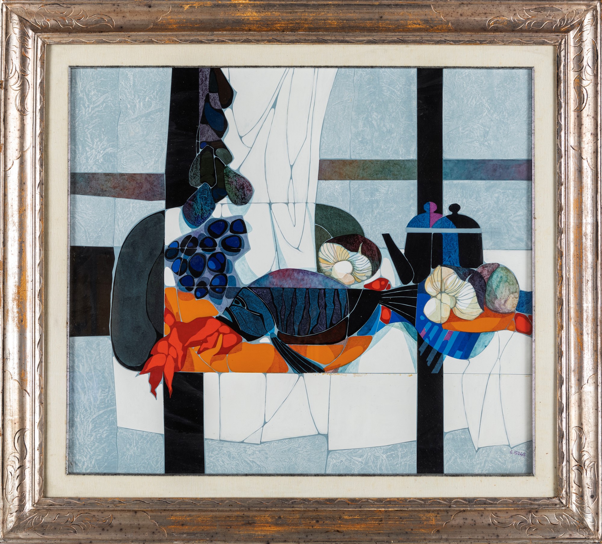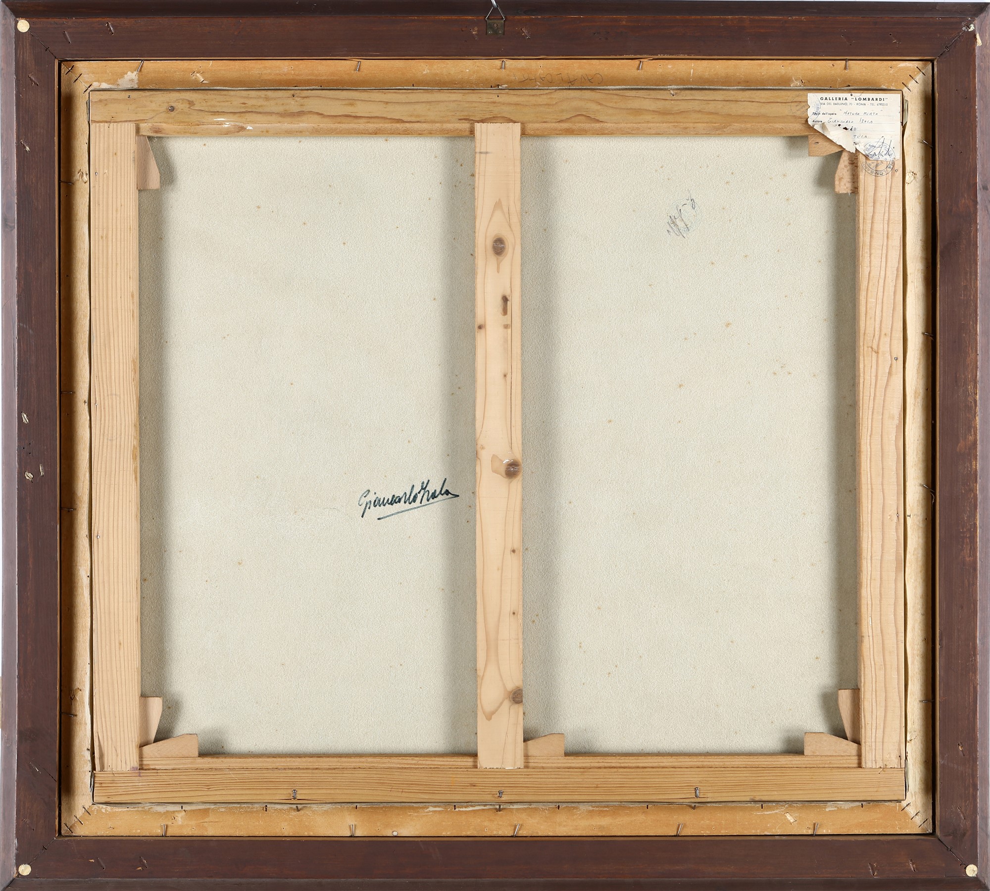 Natura morta Olio su tela cm 70x80 - in cornice cm 90x100 Firma in basso a destra "G. Isola". Al verso reca firma ed etichetta della Galleria Lombardi, Roma
