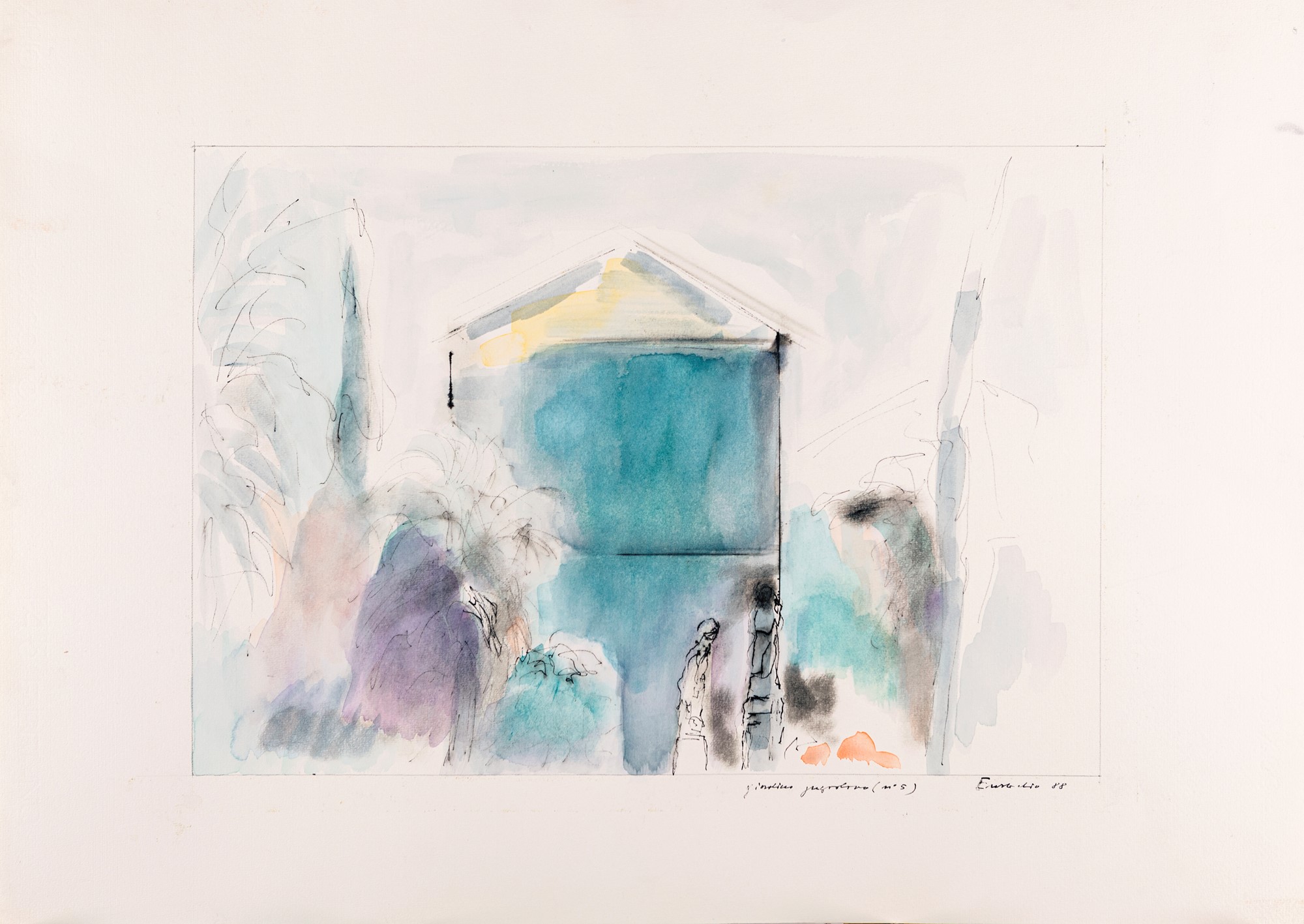 Giardino (n° 5) 1988 Matita, china e acquarello su cartoncino cm 50x70 Firma titolo e data in basso a destra "Eustachio '88".
