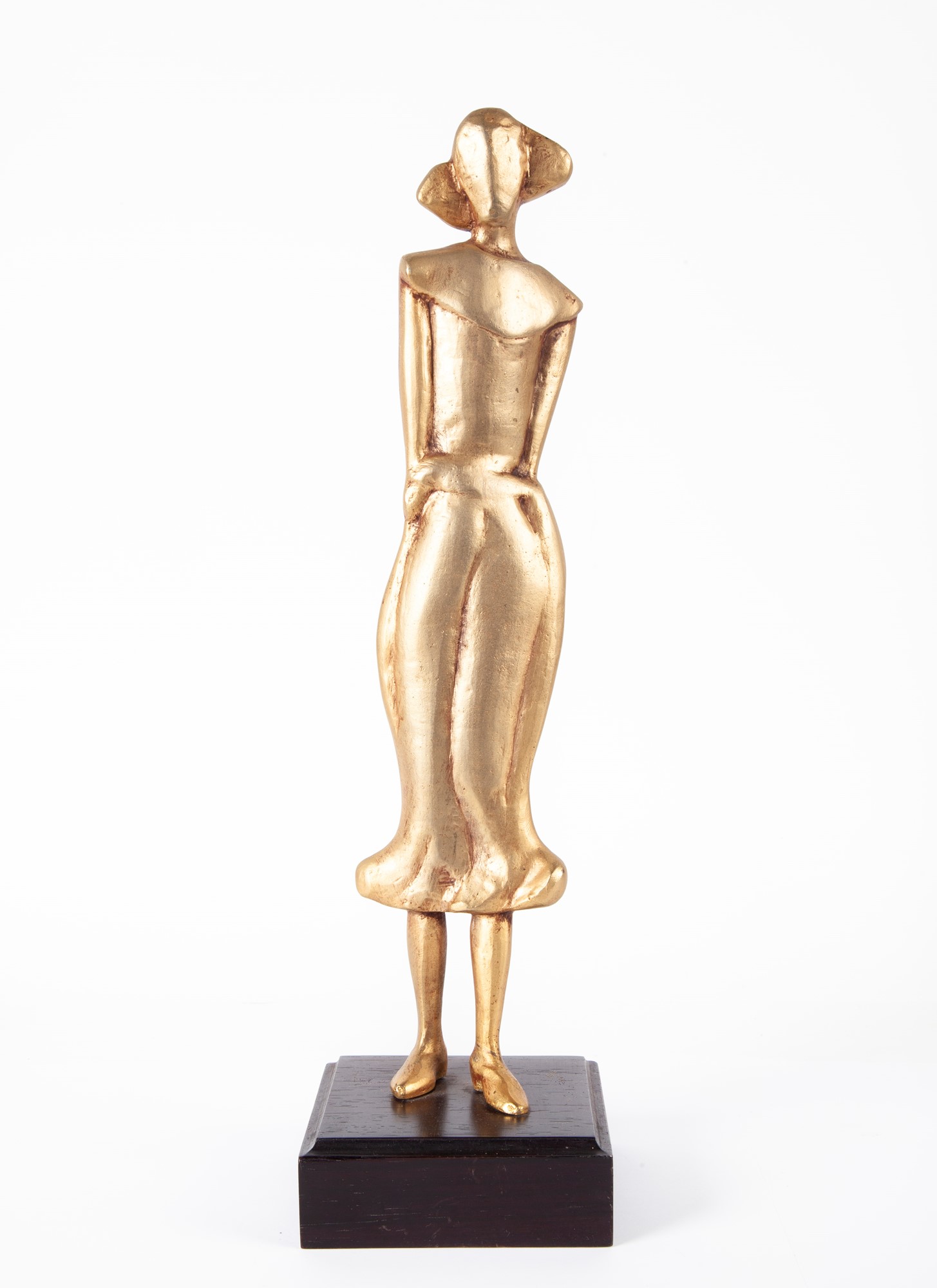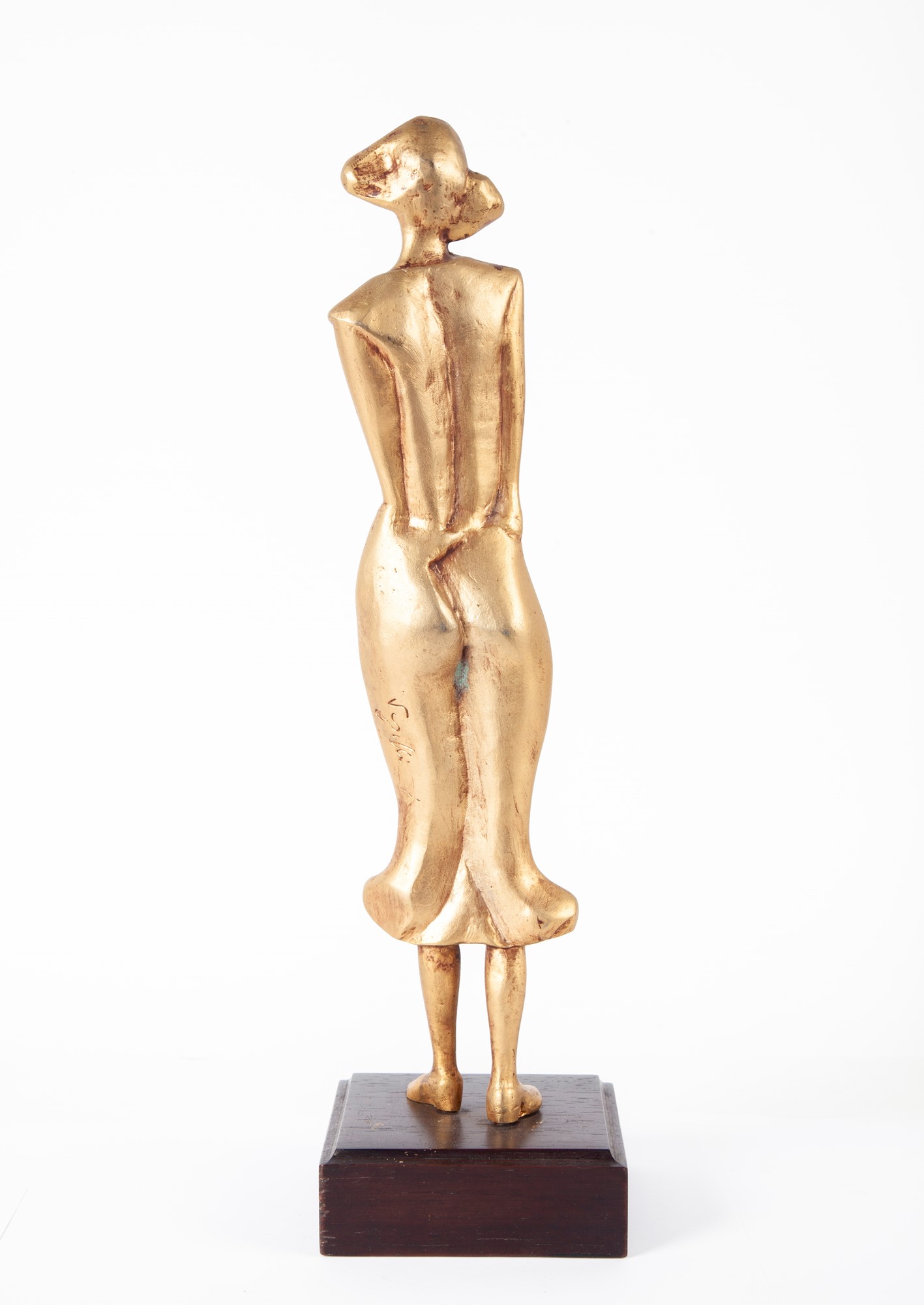 Figura Scultura in bronzo dorato cm 37,5x8,5x3 - base in legno cm 4x11x11 Firma incisa "Vangelli"