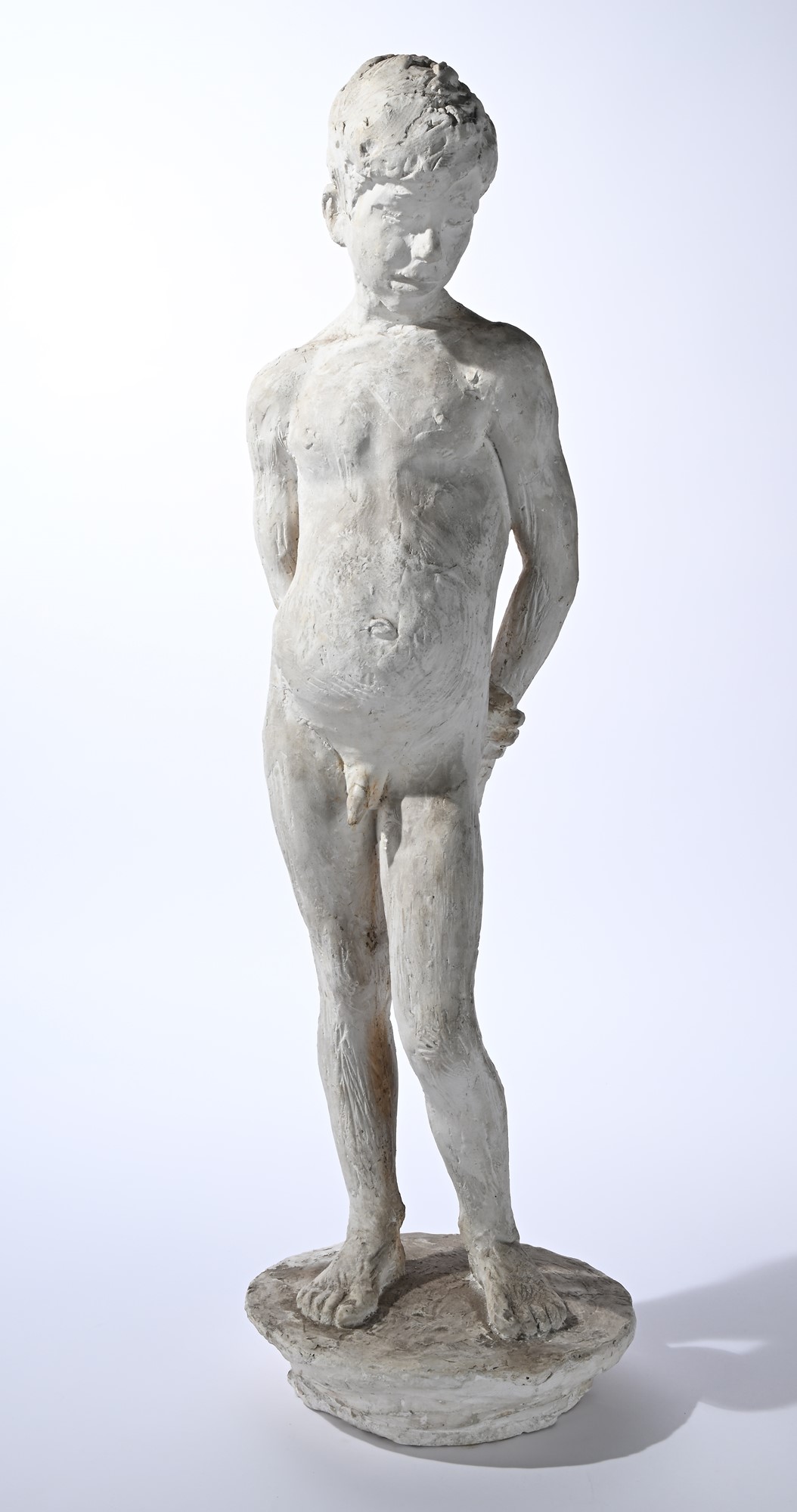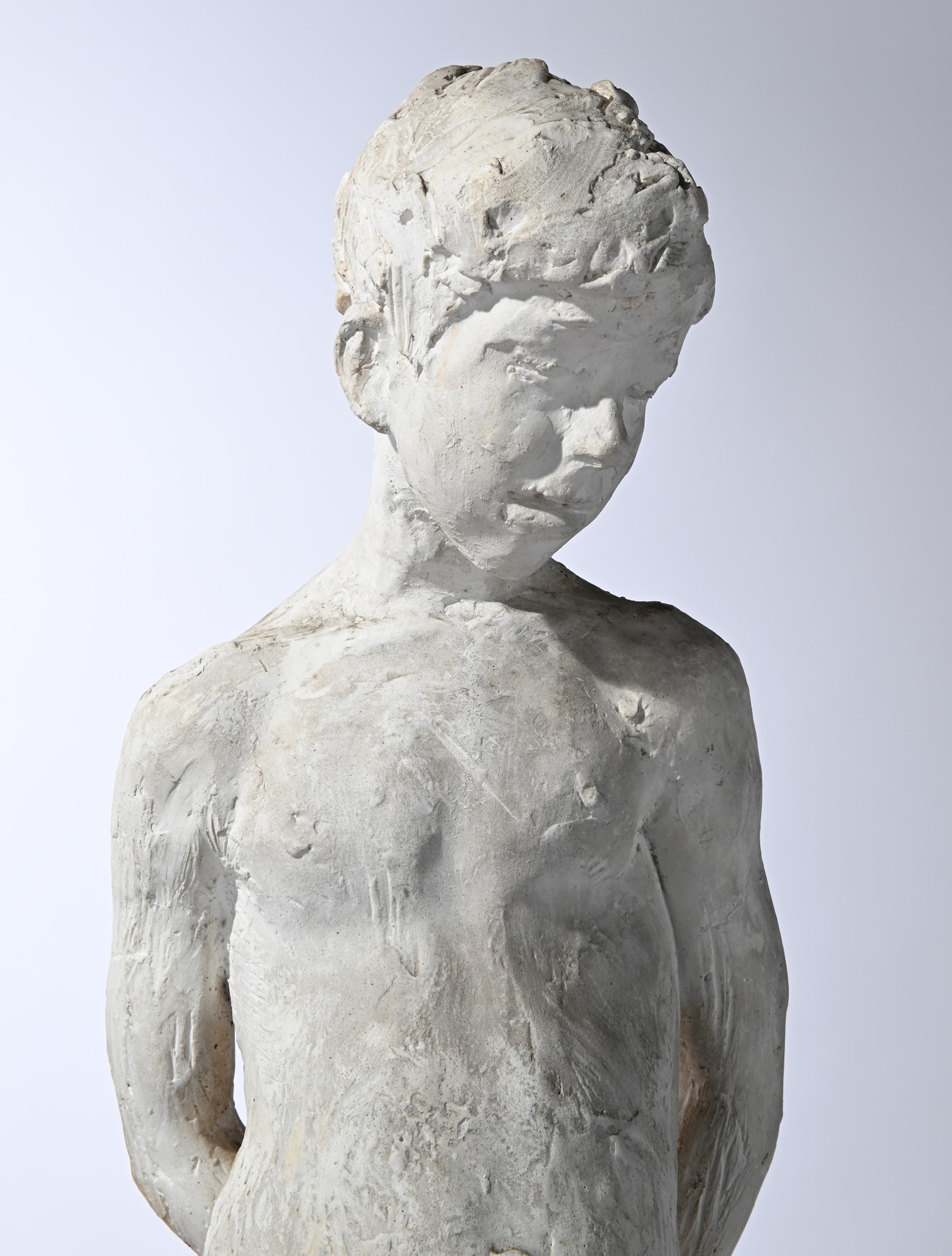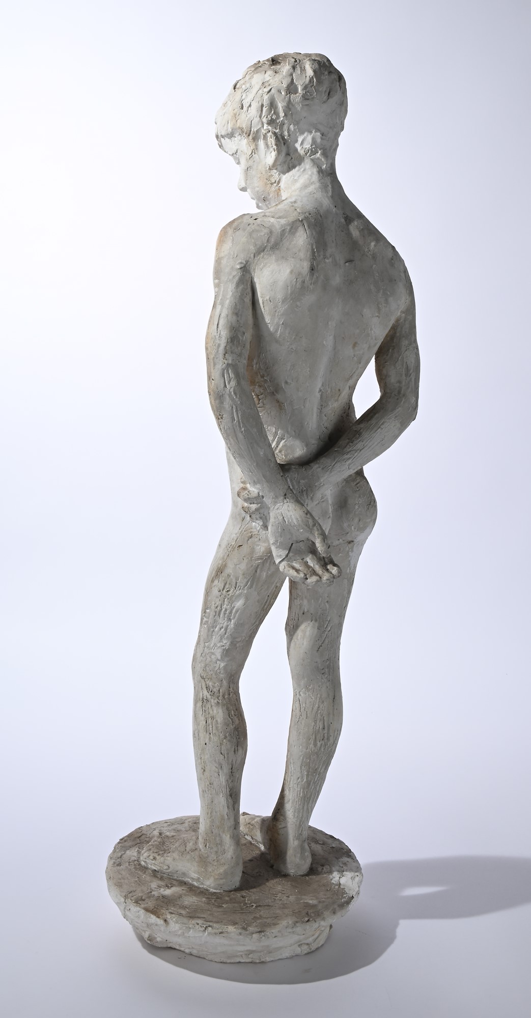 A) Bozzetto di Giovane, 1940 ca. scultura in gesso, h 76 cm. Difetti