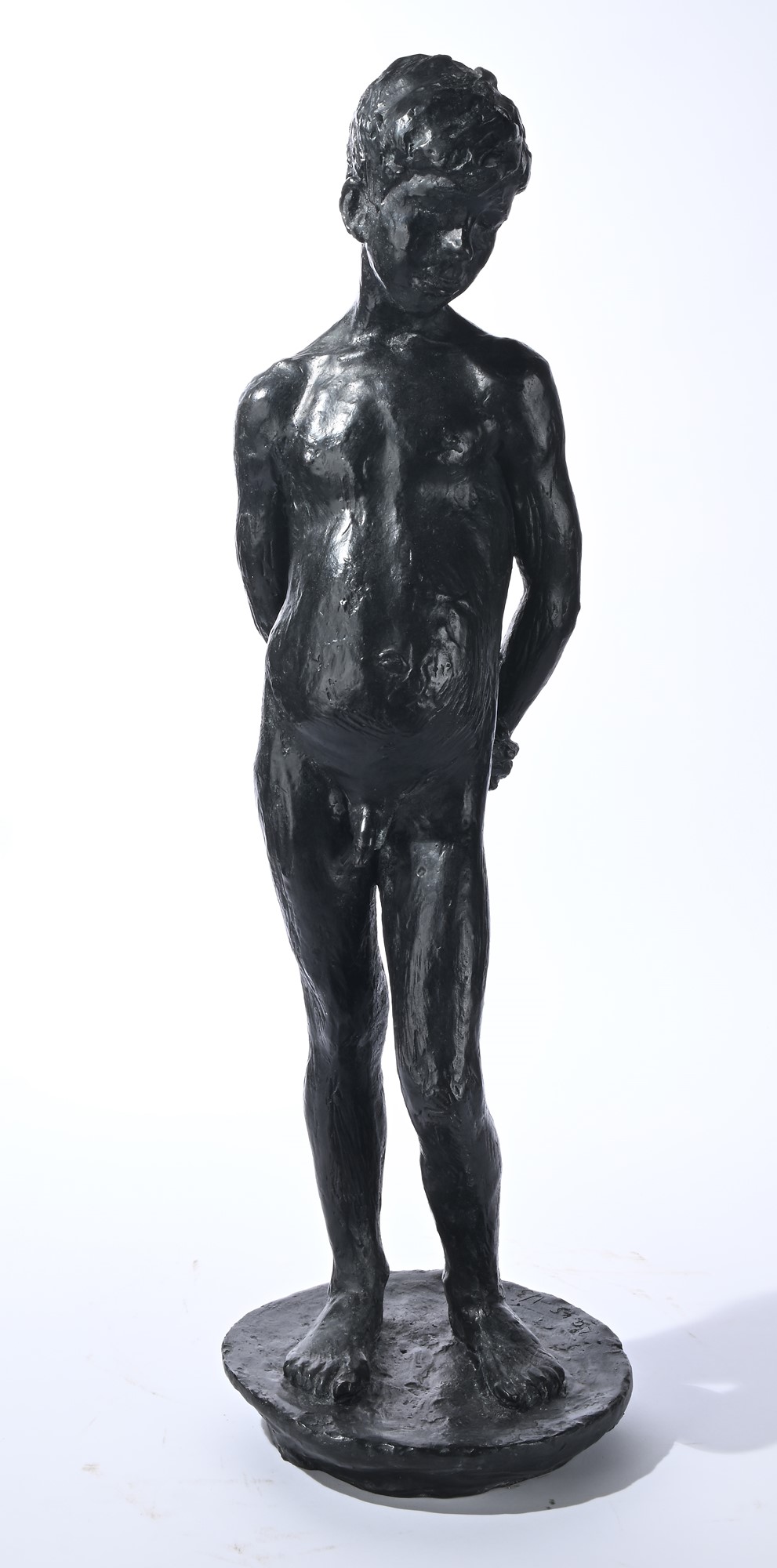 B) Antonio, 1945, scultura in bronzo, h 73 cm. Monogramma, data e numerazione sulla base "L.G. '45, 1/3". Trattasi di una rielaborazione della scultura in gesso "Bozzetto di Giovane" precedentemente elencata.