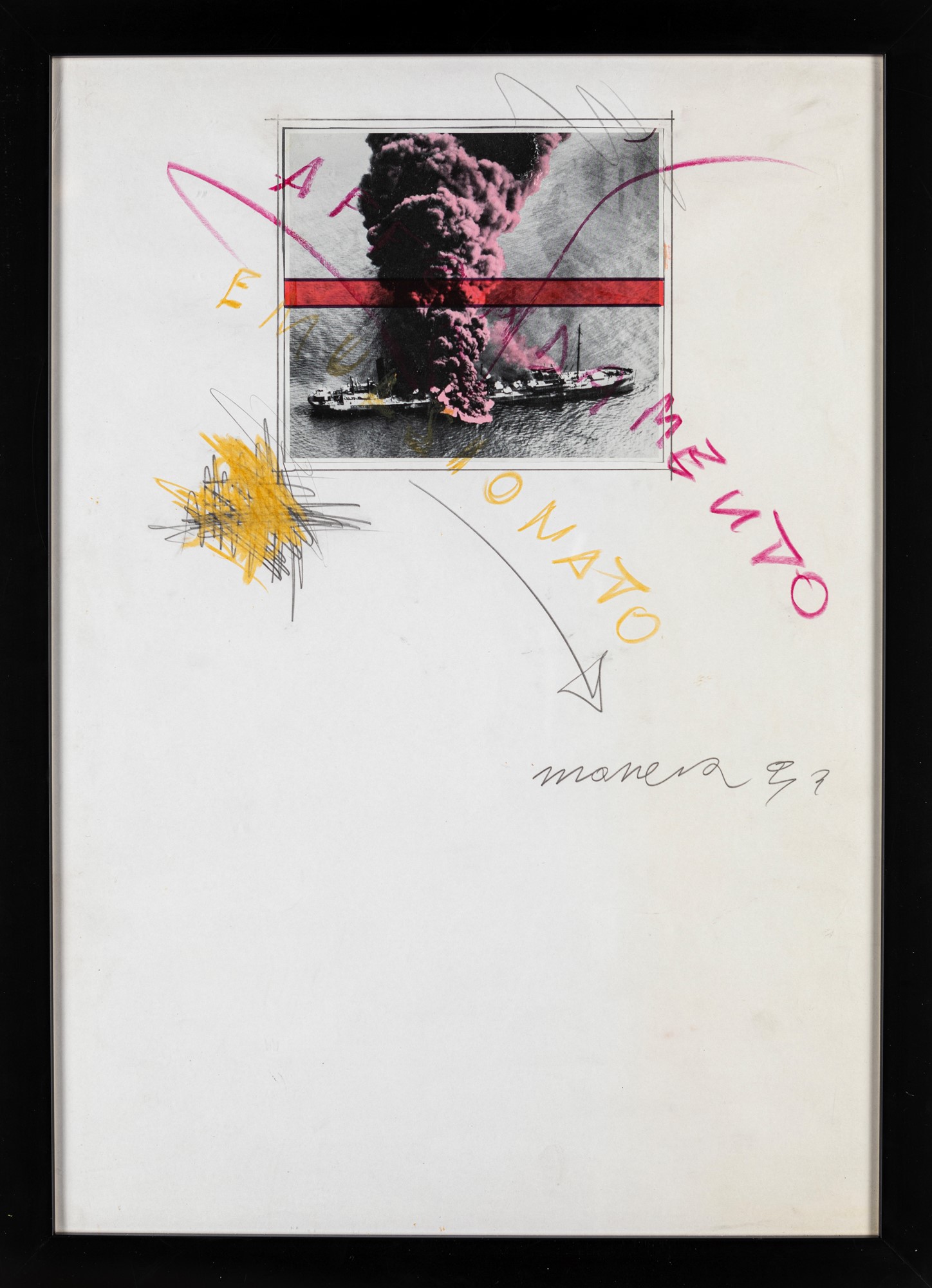 Affondamento Emulsionato 1993 Tecnica mista (pastelli, matita e collage) su carta cm 60x41 - in cornice cm 64x47 Firma e data "Manera '93" sul fronte. Al verso reca timbro