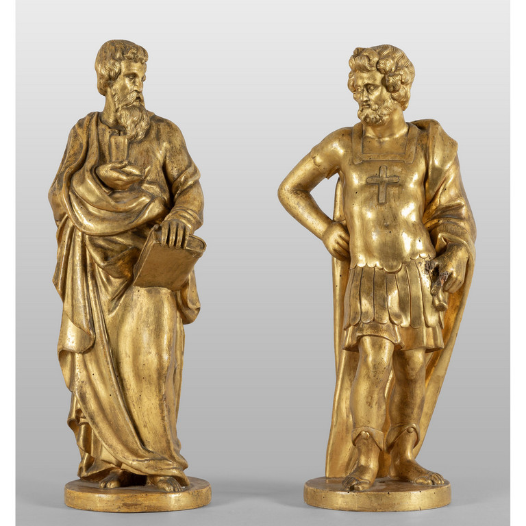 Coppia di sculture in legno intagliato e dorato sec.XVIII