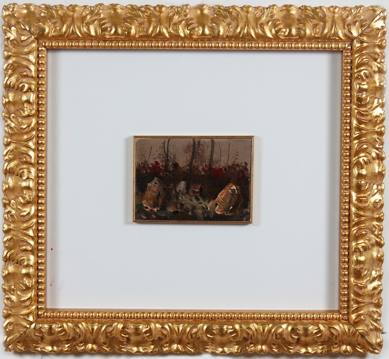 ANNIGONI PIETRO (1910 - 1988) Senza Titolo. olio su tela applicata su cartoncino. Cm 14,00 x 19,00. Firma in basso a destra. Autentica dell'artista su fotografia come da documentazione allegata all'opera. Cornice presente