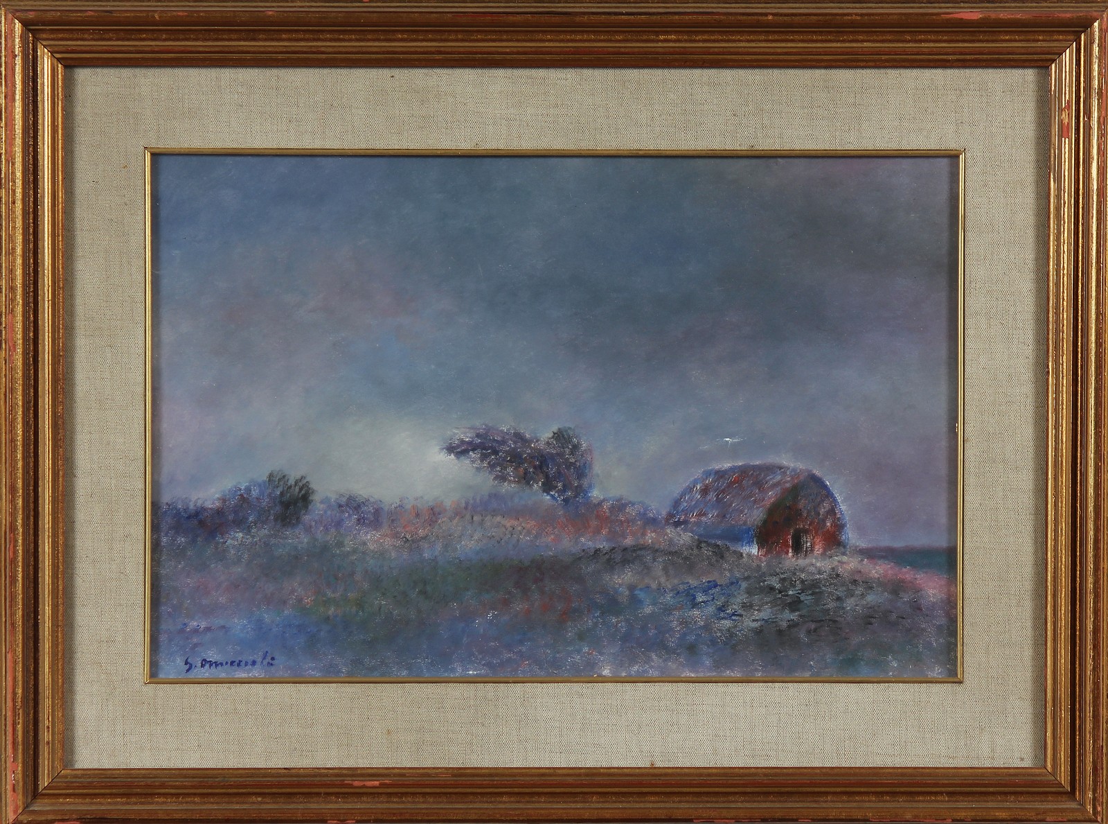 OMICCIOLI GIOVANNI (1901 - 1975) Paesaggio. Pastello su cartone. Cm 50,00 x 33,00. Firma in basso a sinistra. Al retro riposta la scritta "Passoscuro n .43". Cornice presente