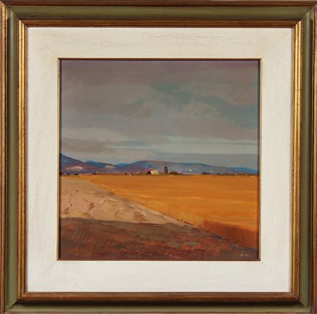 ANONIMO Paesaggio. Olio su tela . Cm 50,00 x 50,00. Firmato in basso a destra Bruno Corso. Cornice presente