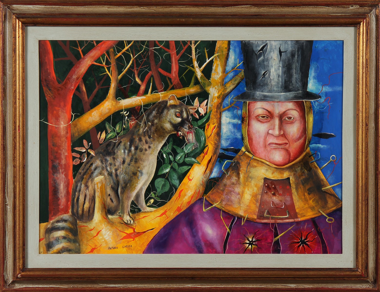 ANONIMO Uomo con faina. Tempera ad uovo. Cm 70,00 x 50,00. Firmato in basso a destra Chessa. Cornice presente