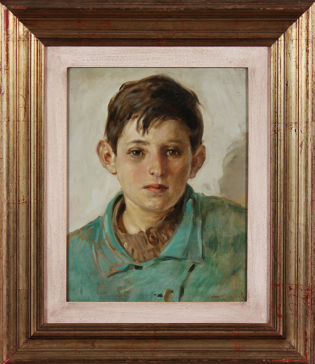 GRAGNOLI OVIDIO (1893 - 1953) Ritratto di bambino. Olio su tela . Cm 34,00 x 43,00. Firmato in basso a destra Gragnoli. Cornice presente