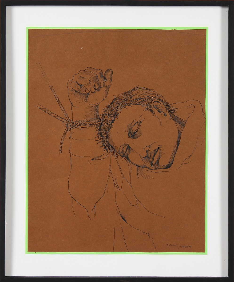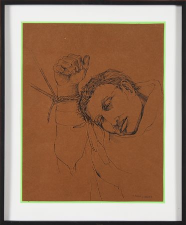 DI MAIO GABRIELE Pensieri profondi. 1971. Tecnica mista su tavola. Cm 55,00 x 70,00. Firma in basso a destra. Sul verso firma, data a e titolo. Autentica dell' artista su fotografia come da documentazione allegata all' opera. Cornice presente