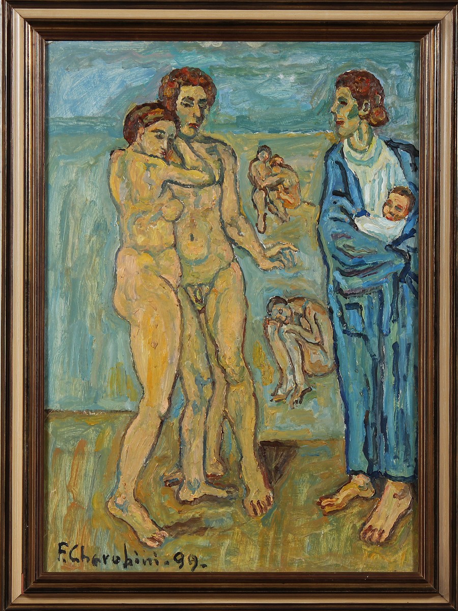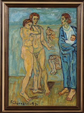 CHERUBINI FRANCESCO (n. 1929) Senza titolo. 1999. Olio su faesite. Cm 50,00 x 70,00. Firma e anno in basso a sinistra. Cornice presente