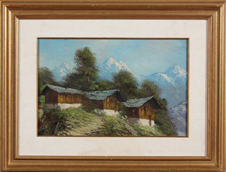 ANONIMO Paesaggio montano. Olio su tavola. Cm 45,00 x 31,00. . Cornice presente