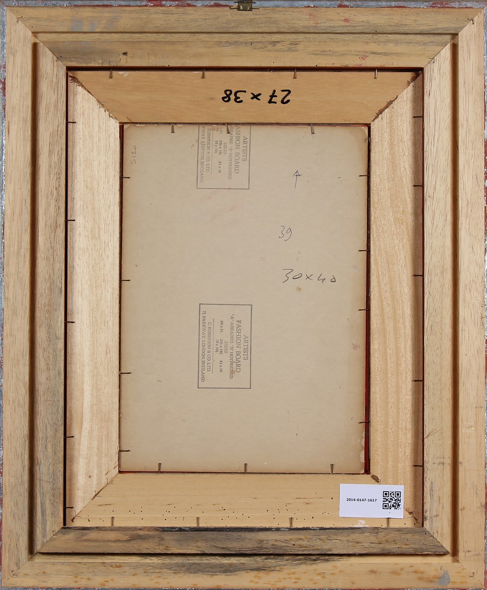 WILSON SCOTTIE (1888 - 1972) Senza titolo. Tecnica mista su cartone. Cm 27,00 x 38,00. FIrma in basso a destra. Al retro tombro Artist Fashion board, a cura di C. Roberson and co. Cornice presente
