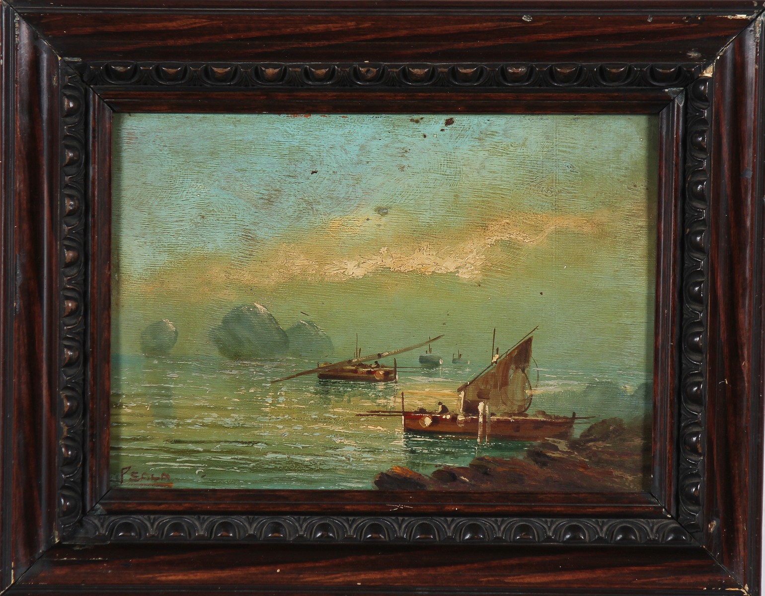 ANONIMO Marina. Olio su tela . Cm 35,00 x 25,00. Firmato in basso a sinistra PSala. Cornice presente