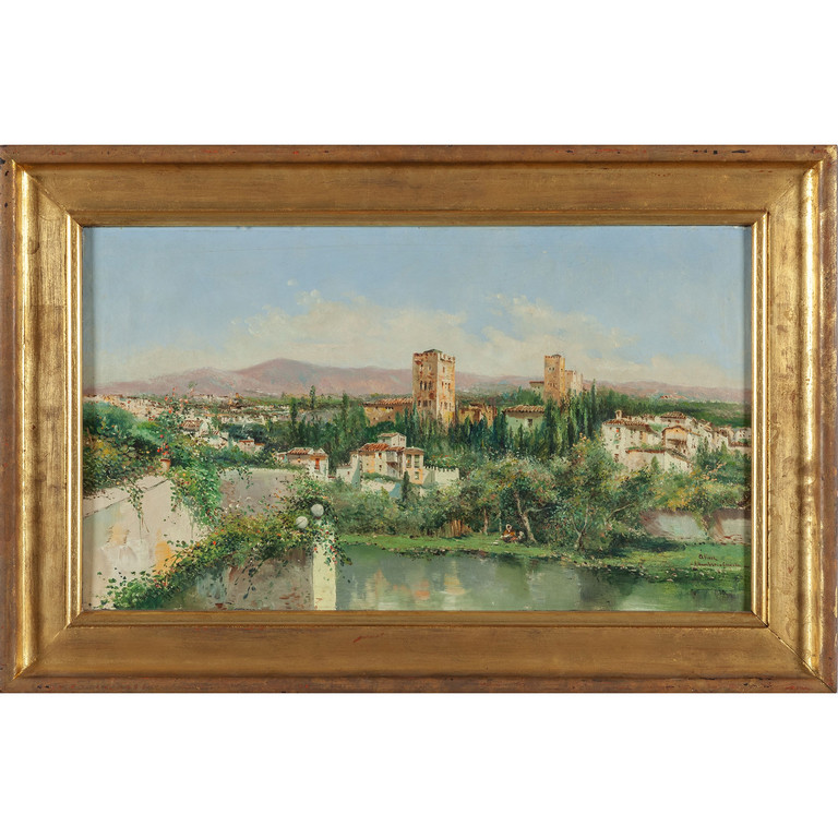 'Alhambra Granada' olio firma illegibile in basso a destra