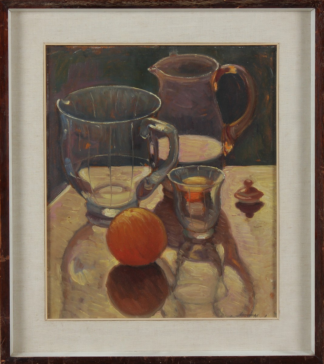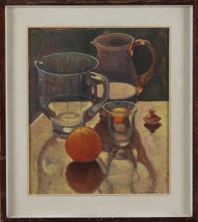 ANONIMO Brocche. Olio su tavola. Cm 40,00 x 46,50. Firmato in basso a destra. Cornice presente