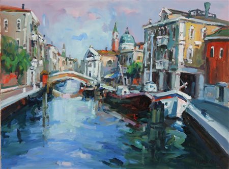 DE LUCA MARIO (1943 - 2007) Senza titolo. Olio su tela . Cm 80,00 x 60,00. Firma in basso a destra.
