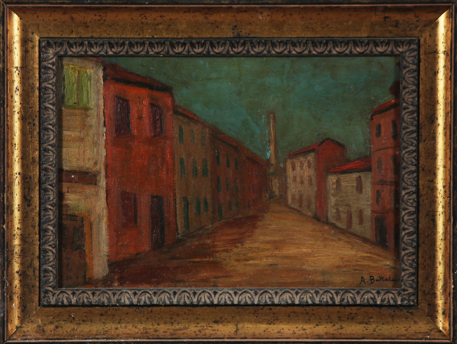 BATTAINI ANTONIO Paesaggio. Olio su cartone. Cm 36,50 x 25,50. firmato. Cornice presente