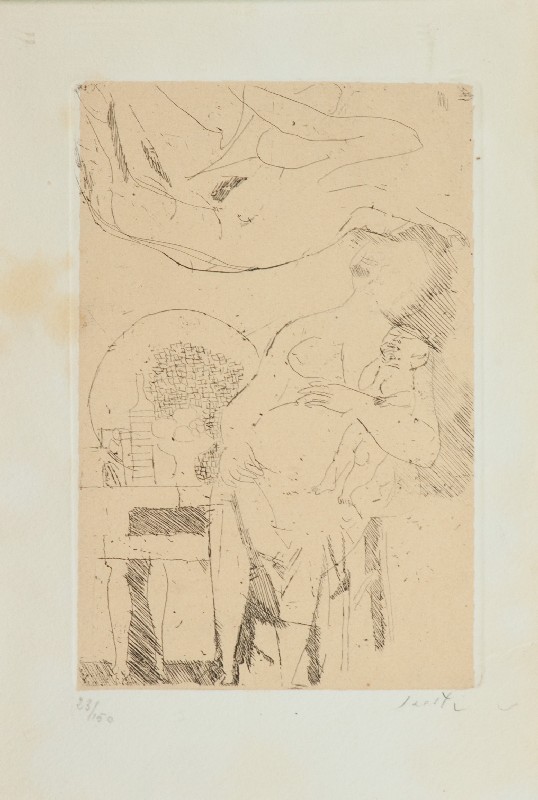 Bruno Saetti (Bologna 1902 - 1984) LOTTO UNICO DI DUE OPERE - "Maternità", Acquaforte di cm. 18x11,5, su carta di cm. 25x17, es. 23/150, firma in basso a destra, tiratura in basso a sinistra; - "Maternità", Acquaforte di cm. 18x11,5, su carta di cm. 25x17, es. 23/150, firma in basso a destra, tiratura in basso a sinistra.