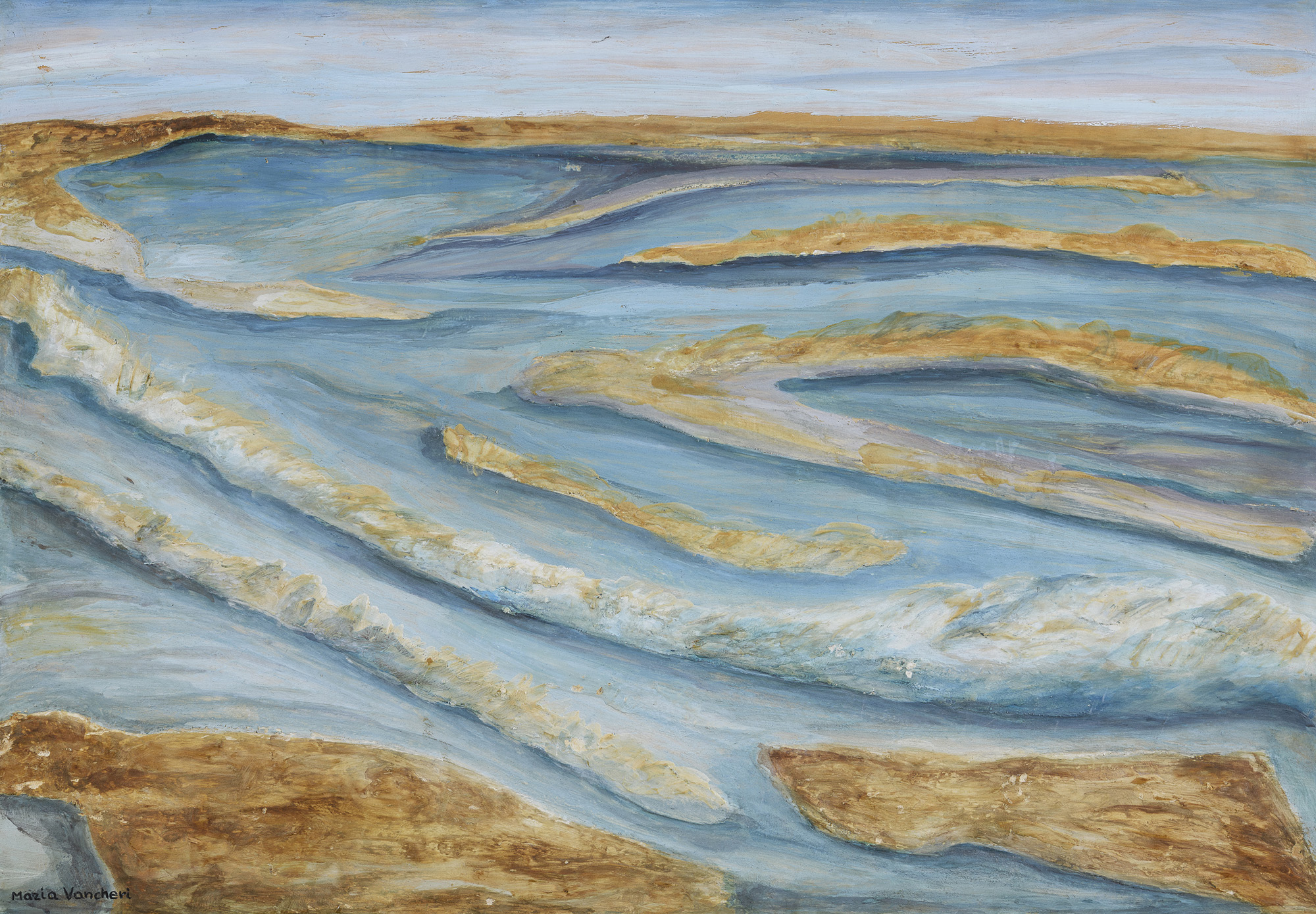 Tecnica mista, polveri, gesso e tela su tavola, cm. 55 x 75