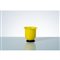 Vaso a campana rovescia in vetro opalino giallo e base troncoconica nera. Etichetta e firma e data a punta “Venini 1999”.
