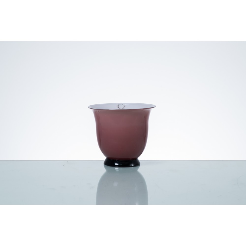Vaso della serie “Anni Trenta” modello “500.01” a campana rovescia in vetro opalino viola e base troncoconica nera. Etichetta, firma e data a punta “Venini 1992”.