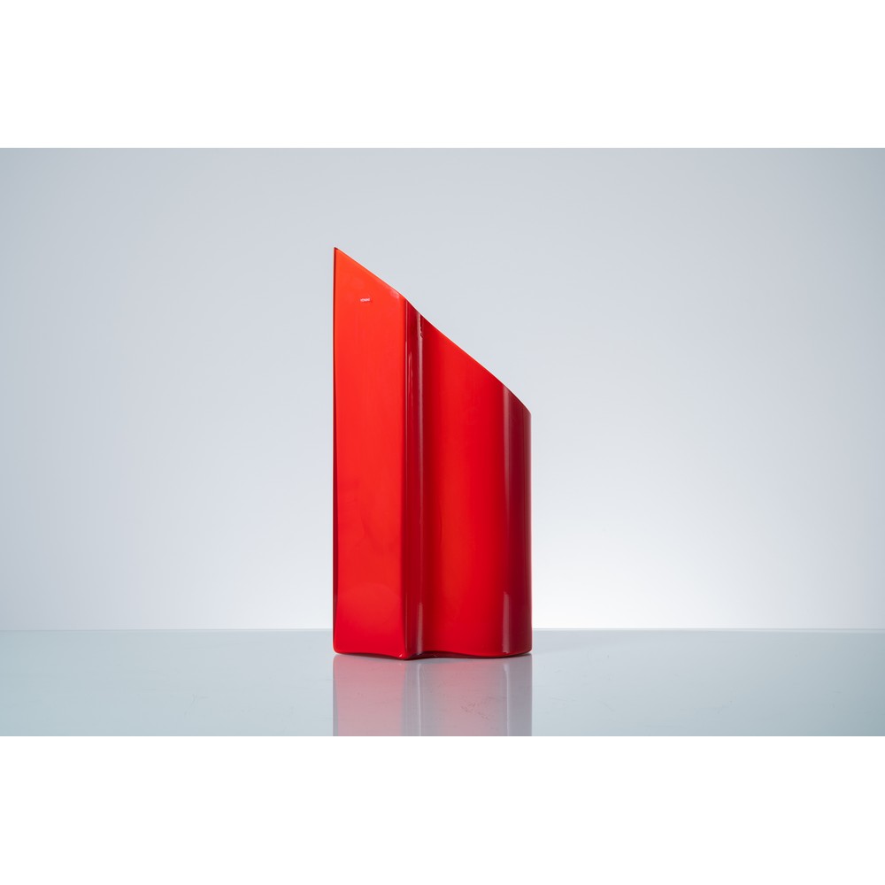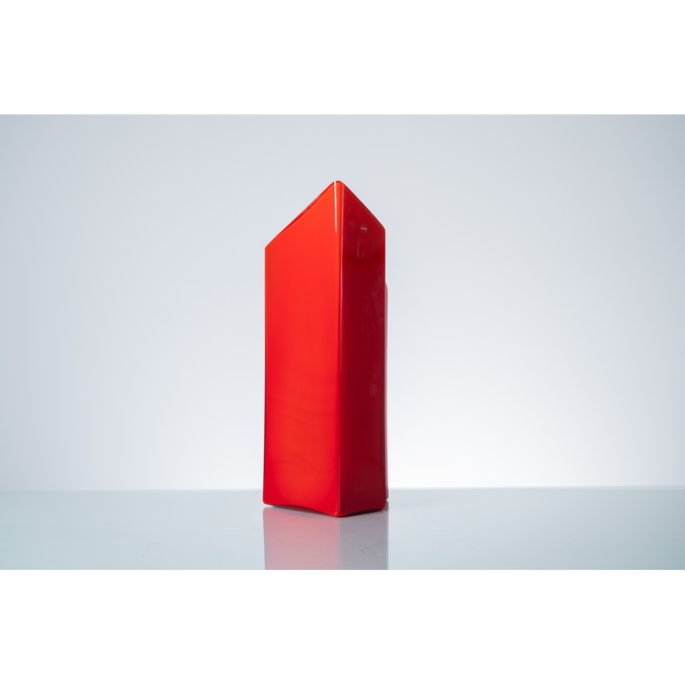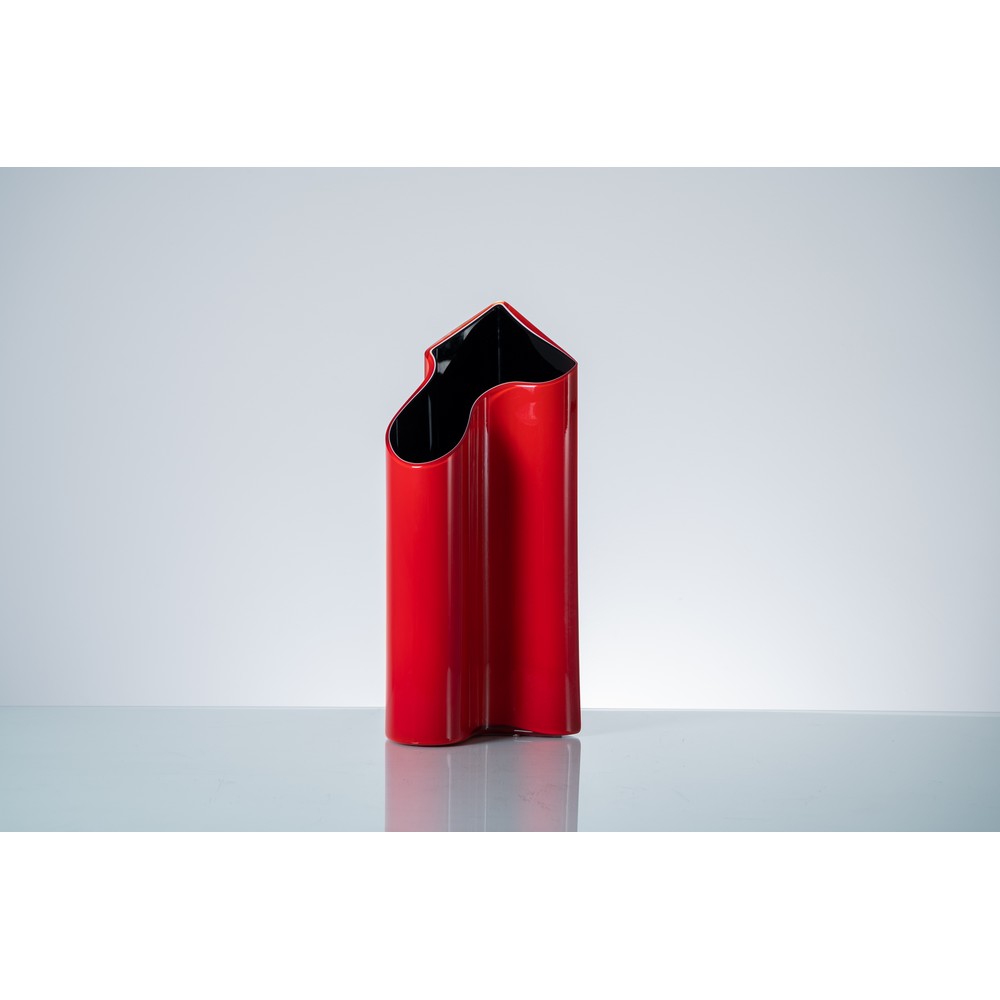Vaso modello “Kelo” in vetro incamiciato colore granato e nero. corpo sagomato con bocca inclinata piana. Firma a punta “Sarpaneva, Venini, 2012”