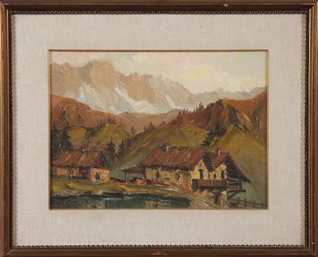 BASSI LUIGINA (n. 1906) Baite a pezzo. Olio su tela . Cm 42,00 x 31,50. Firmato in basso a sinistra,. Cornice presente