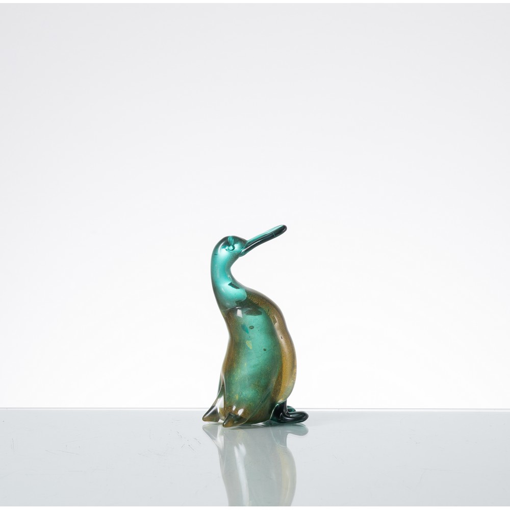 Figura di folaga della serie “Fumati” in vetro verde decorato "con foglia oro sfumata".