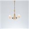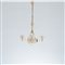 Lampada a sospensione a tre luci vetro cordonato oro con struttura in metallo, corpo sferico con tre bracci ricurvi e coppette semisferiche, fusto decorato con sfere di vetro. Lieve sbeccatura interno coppa.