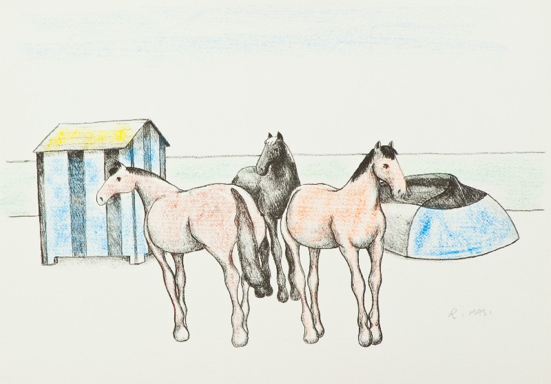 Lot 53 | Roberto Masi (Firenze 1940) CAVALLI Litografia ritoccata a mano su carta, cm....