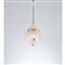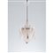 Lampada a sospensione a tre luci vetro rosato e bullicante, struttura in metallo con diffusore a goccia, decori a forma di foglia ricadenti, fusto in vetro torchon.