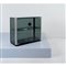 Mobile con struttura in metallo cromato, vetri fumè, piani in vetro, due ante battenti sul fronte.