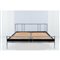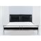 Letto matrimoniale con struttura in tubolare acciaio cromato e curvato, spalliera composta da due cuscini sfoderabili con imbottitura e rivestimento in pelle nera primo fiore.