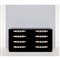 Cassettone in legno laccato nero, sul fronte otto cassetti, maniglie in lucite trasparente a torchon, ottone, piano rettangolare.Usure.